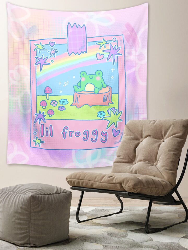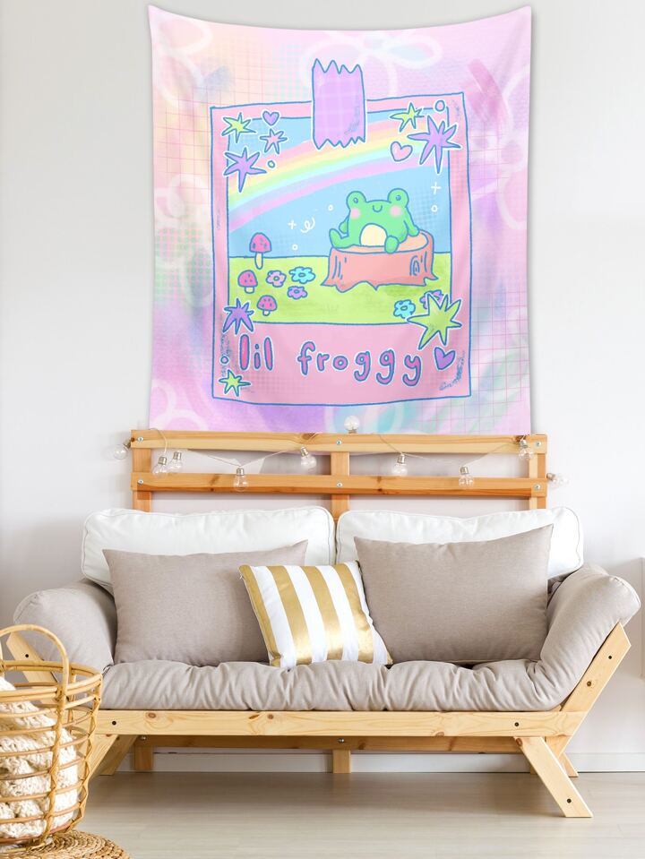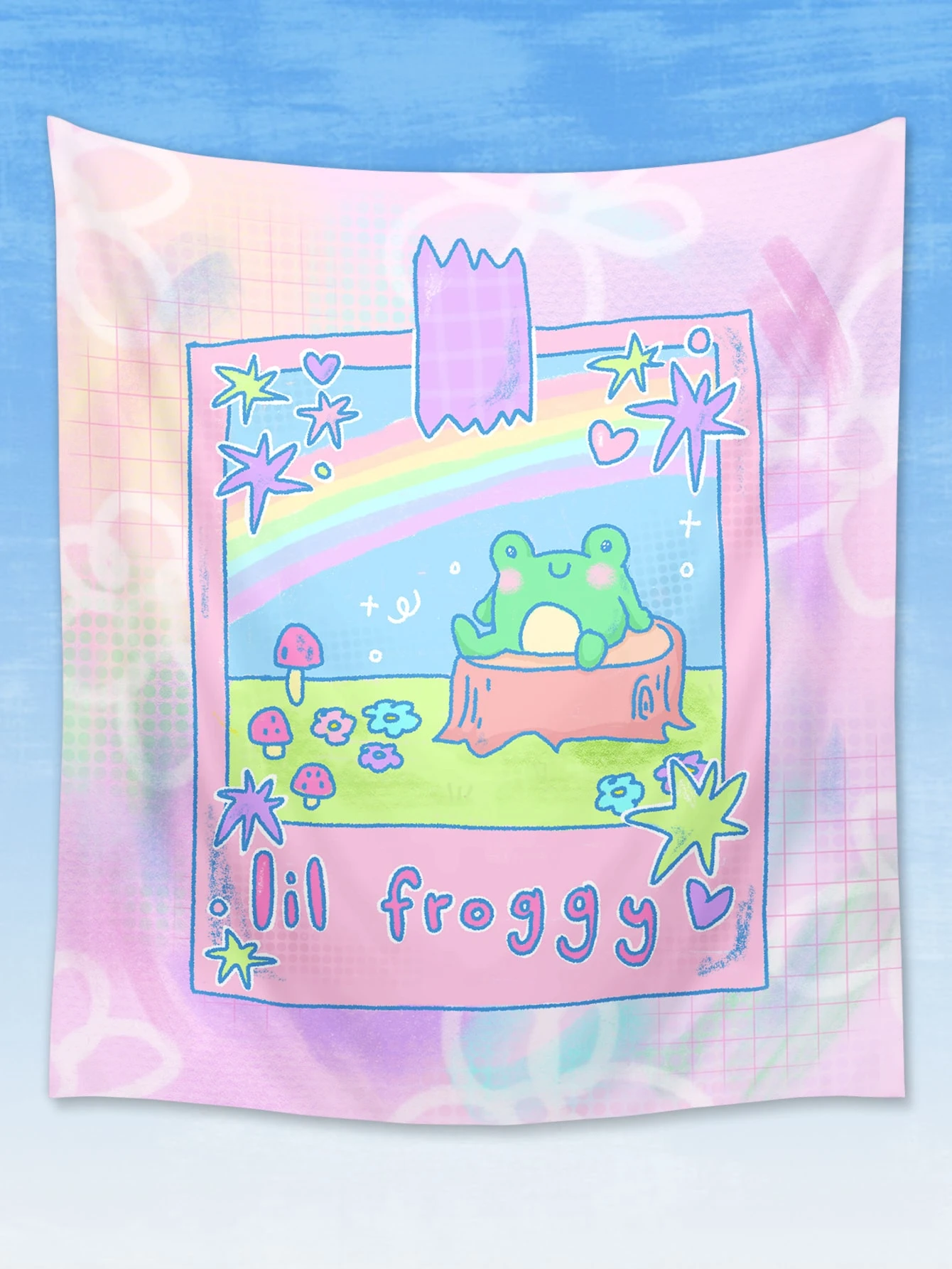 Tiggtactoe Tapiz de rana de dibujos animados & con patrón de arcoíris