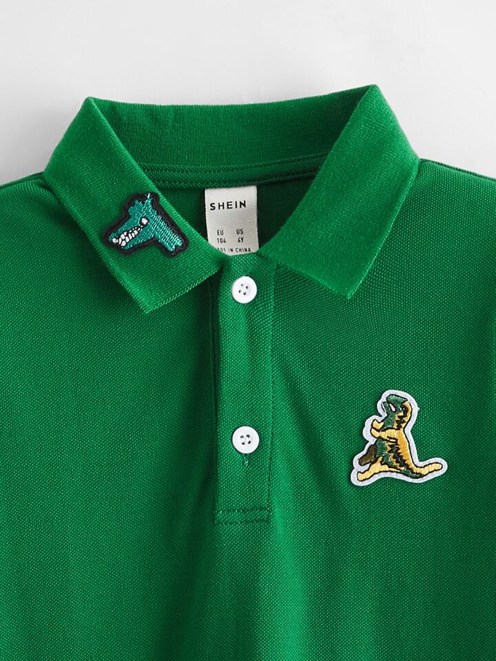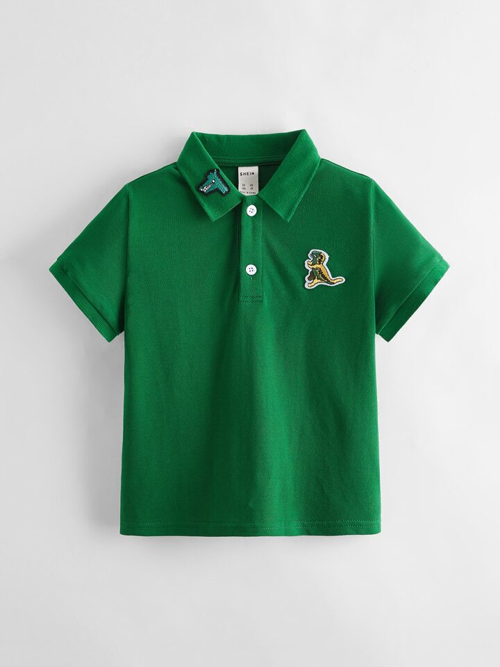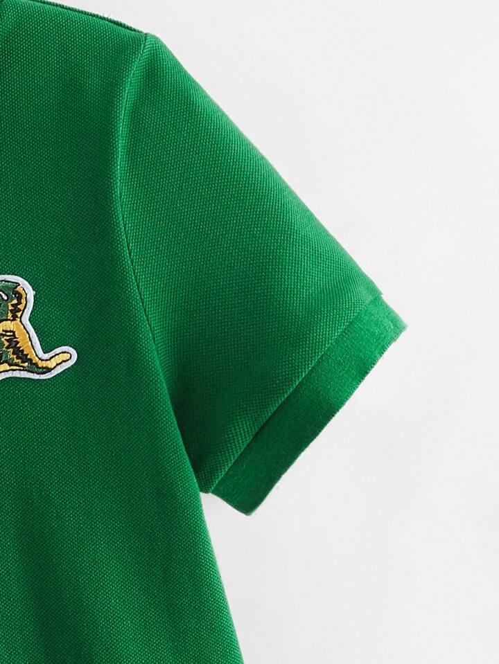 Niños Camisa polo con bordado de dinosaurio de dibujos animados