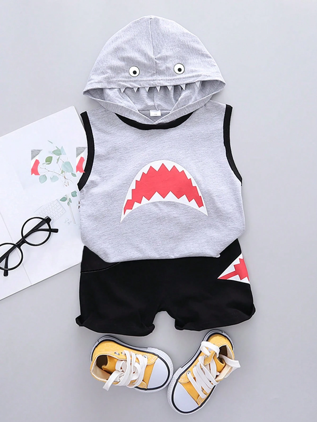 Top Sin Mangas Con Capucha Y Pantalones Cortos Con Gráficos De Dibujos Animados Para Niños Pequeños.