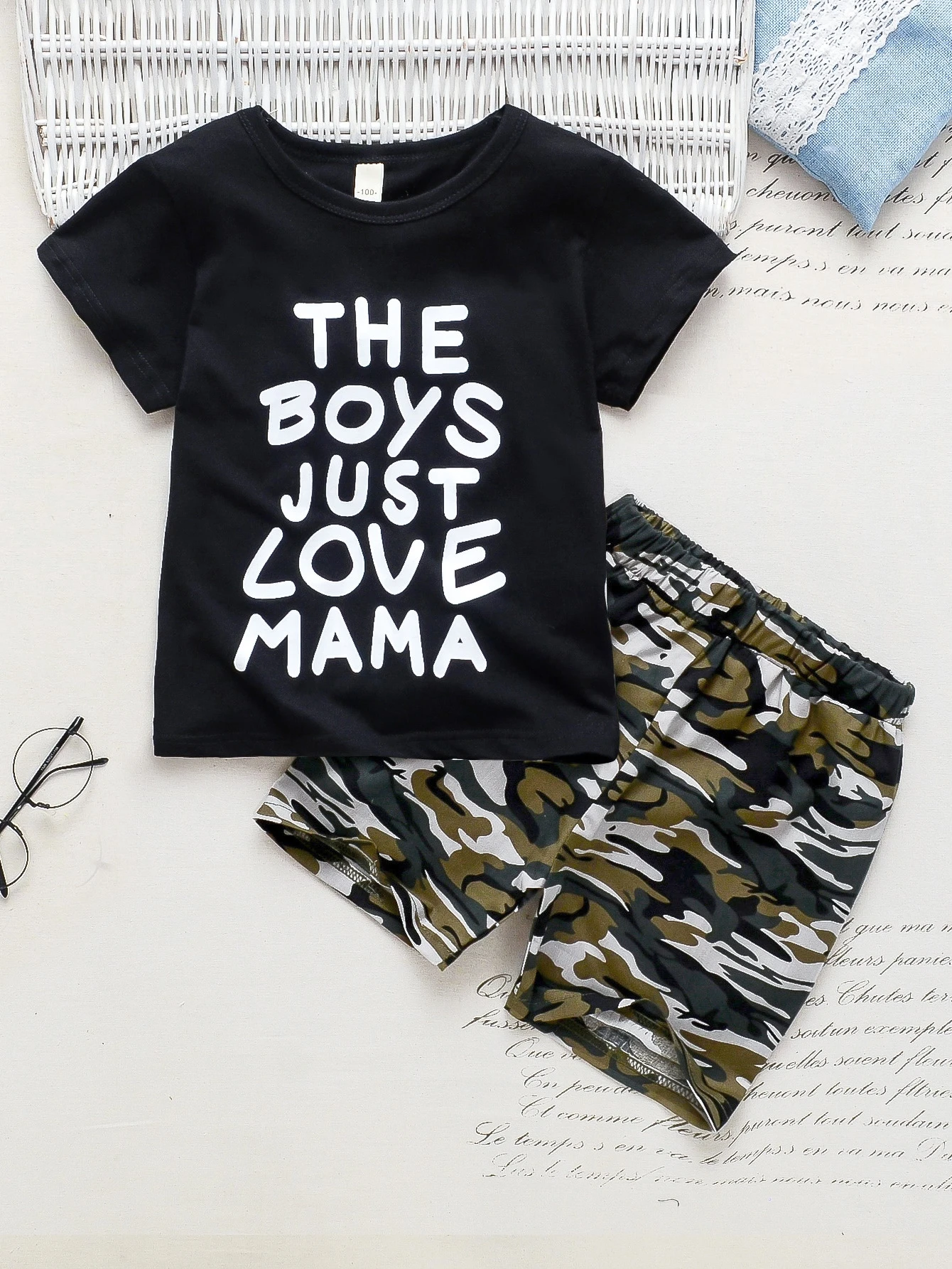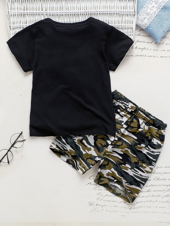 Niñitos con estampado de slogan Camiseta con de camuflaje Shorts