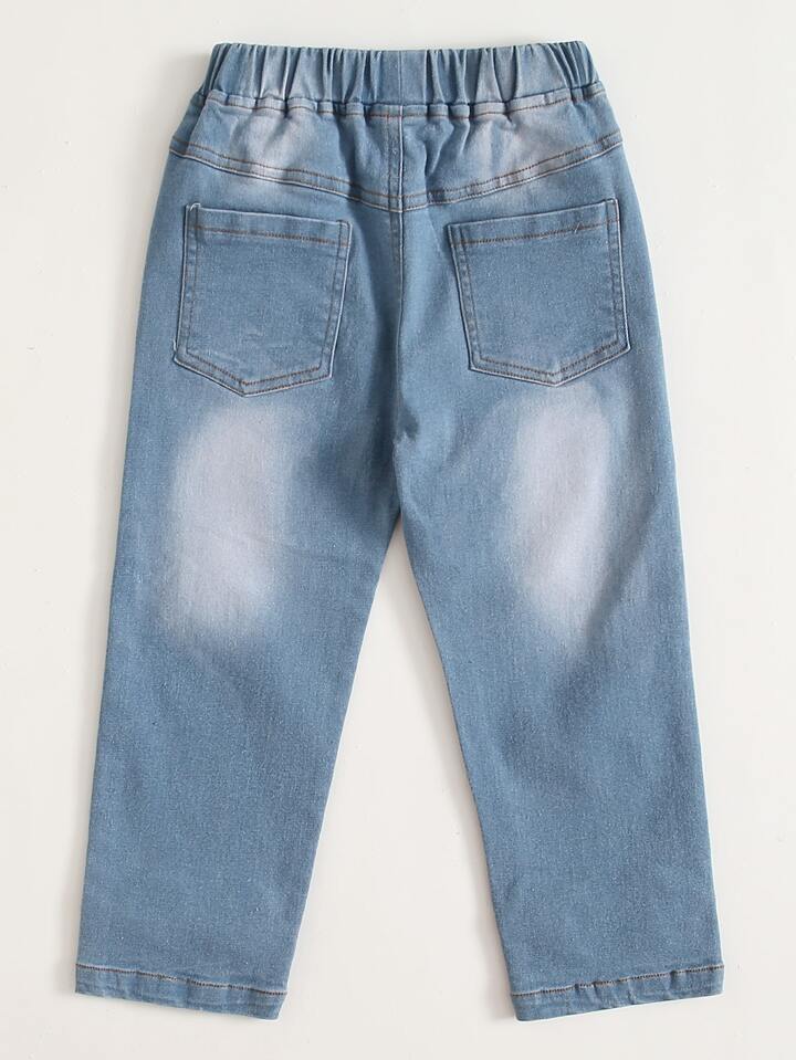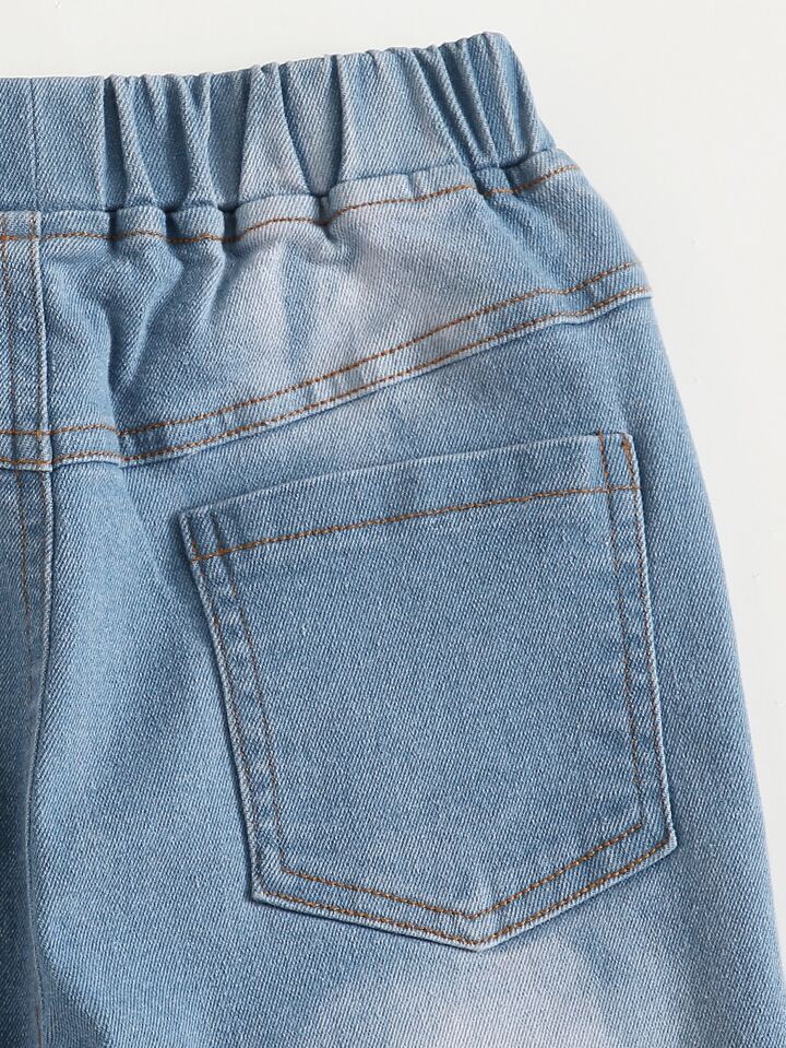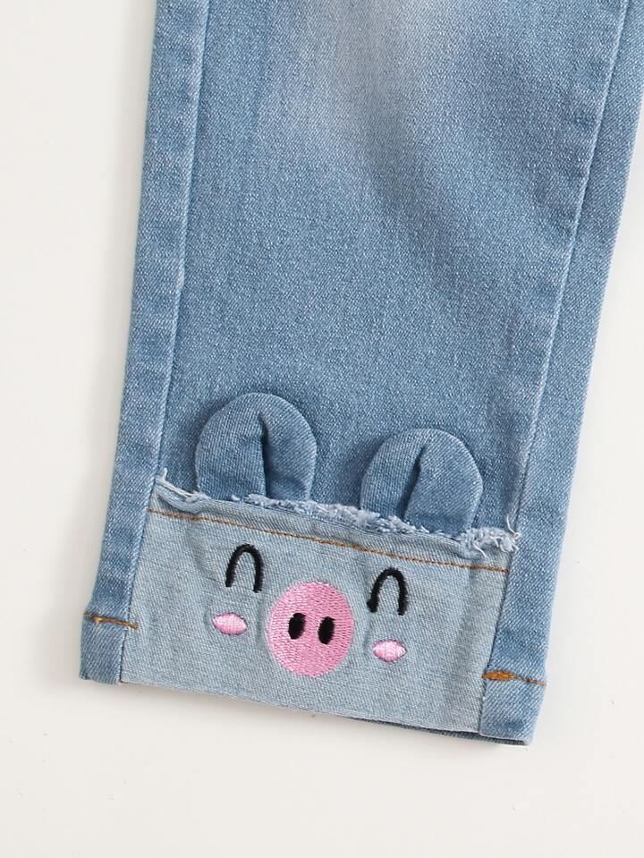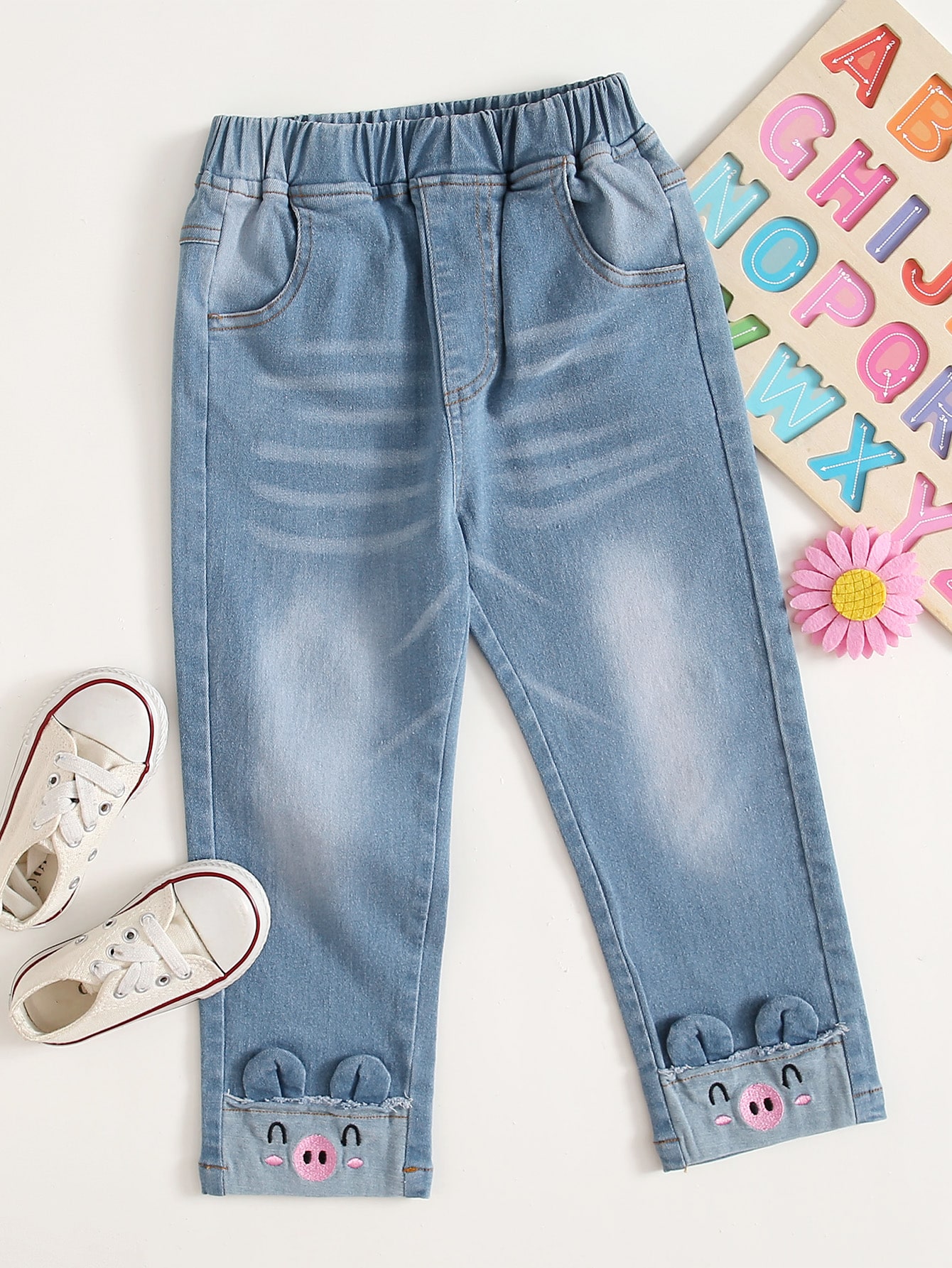 Niñitas Jeans mom con bordado de dibujos animados desgastado