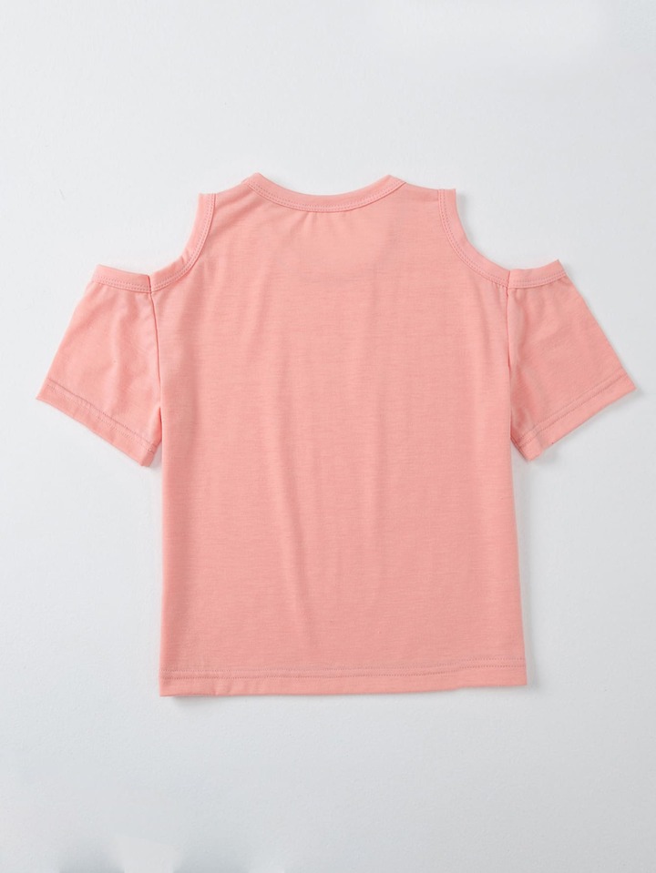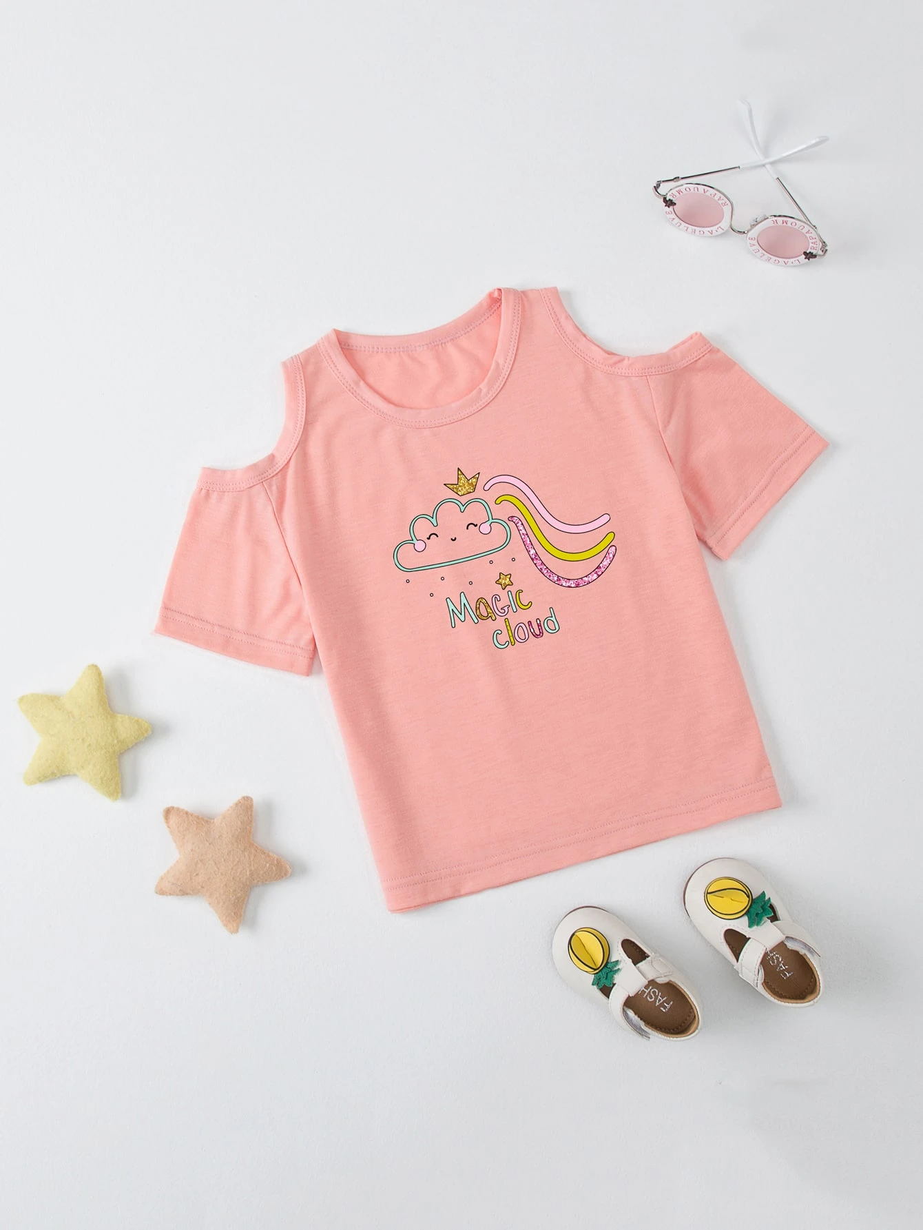 Camiseta con estampado de dibujos animados de hombros descubiertos