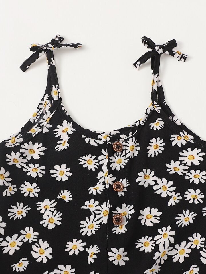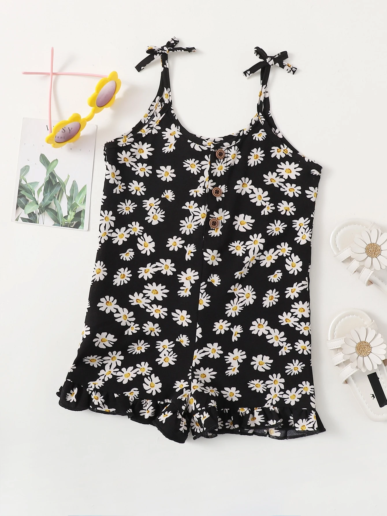 Mono bajo con fruncido de hombro con cordón con estampado de margarita