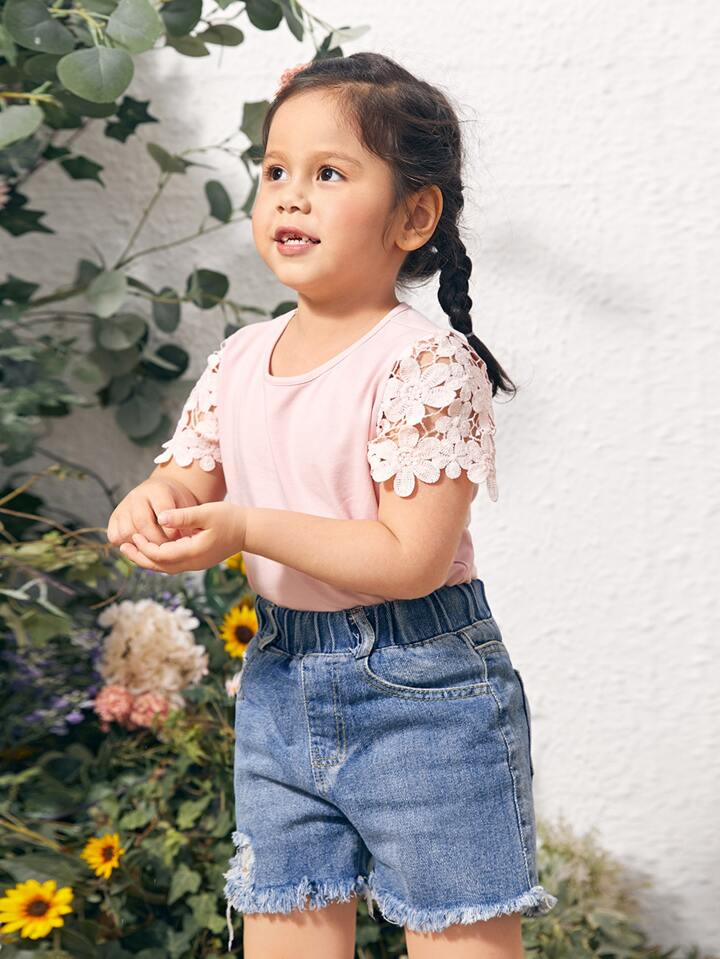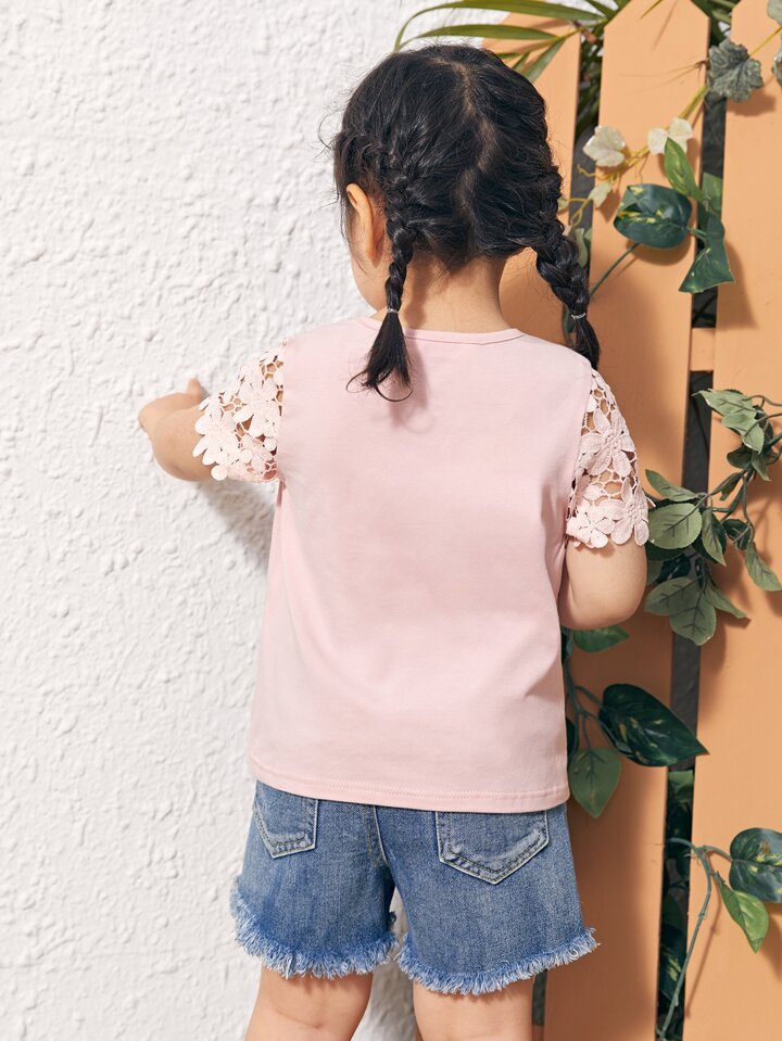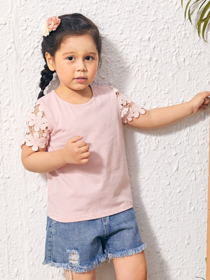 Top De Manga Bordada Con Flores Para Niñas Pequeñas