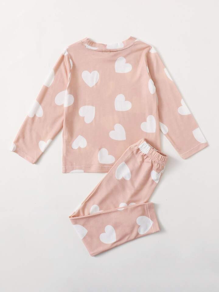 Camiseta Y Leggings Estampados Con Corazones Para Niñas Pequeñas