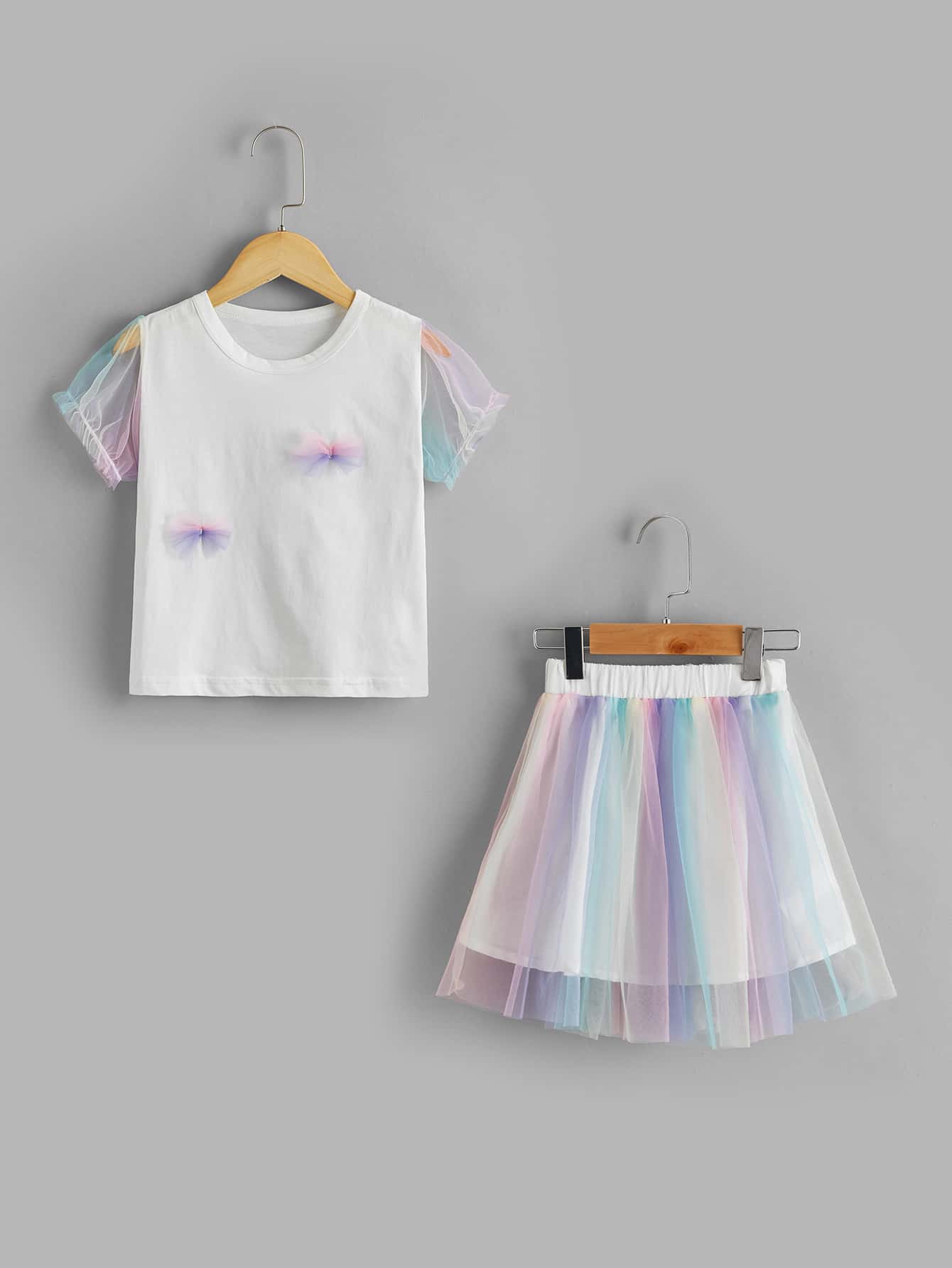 Outfits dos piezas para niña pequeña Malla en contraste Degradé Casual