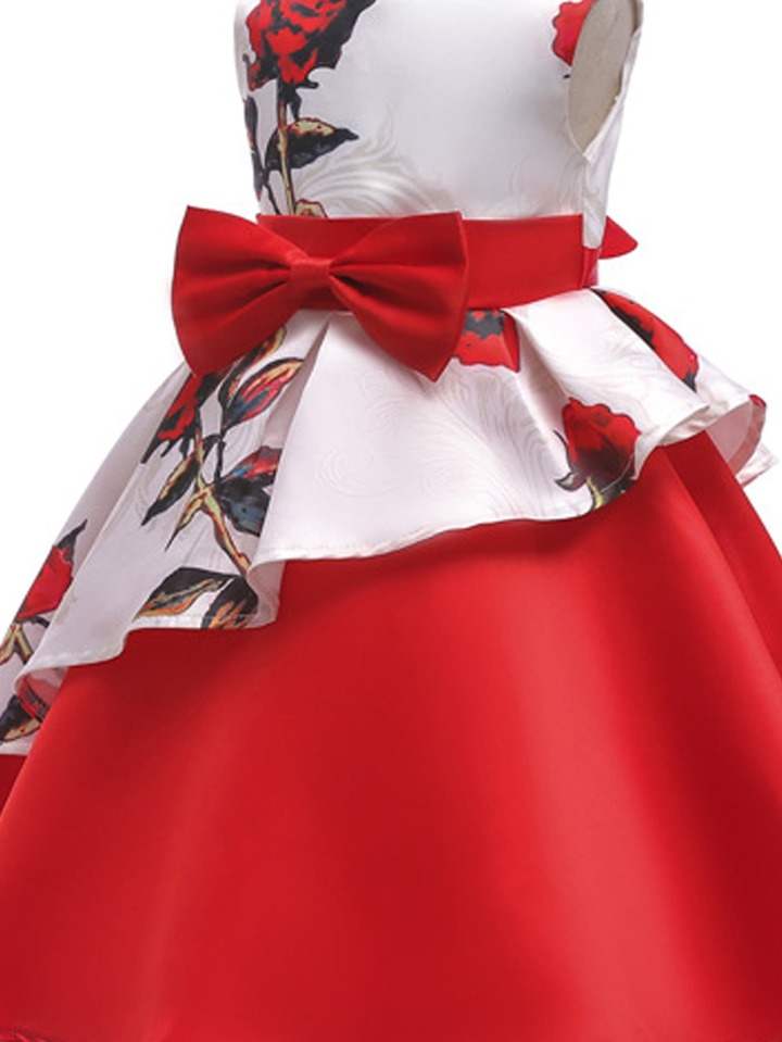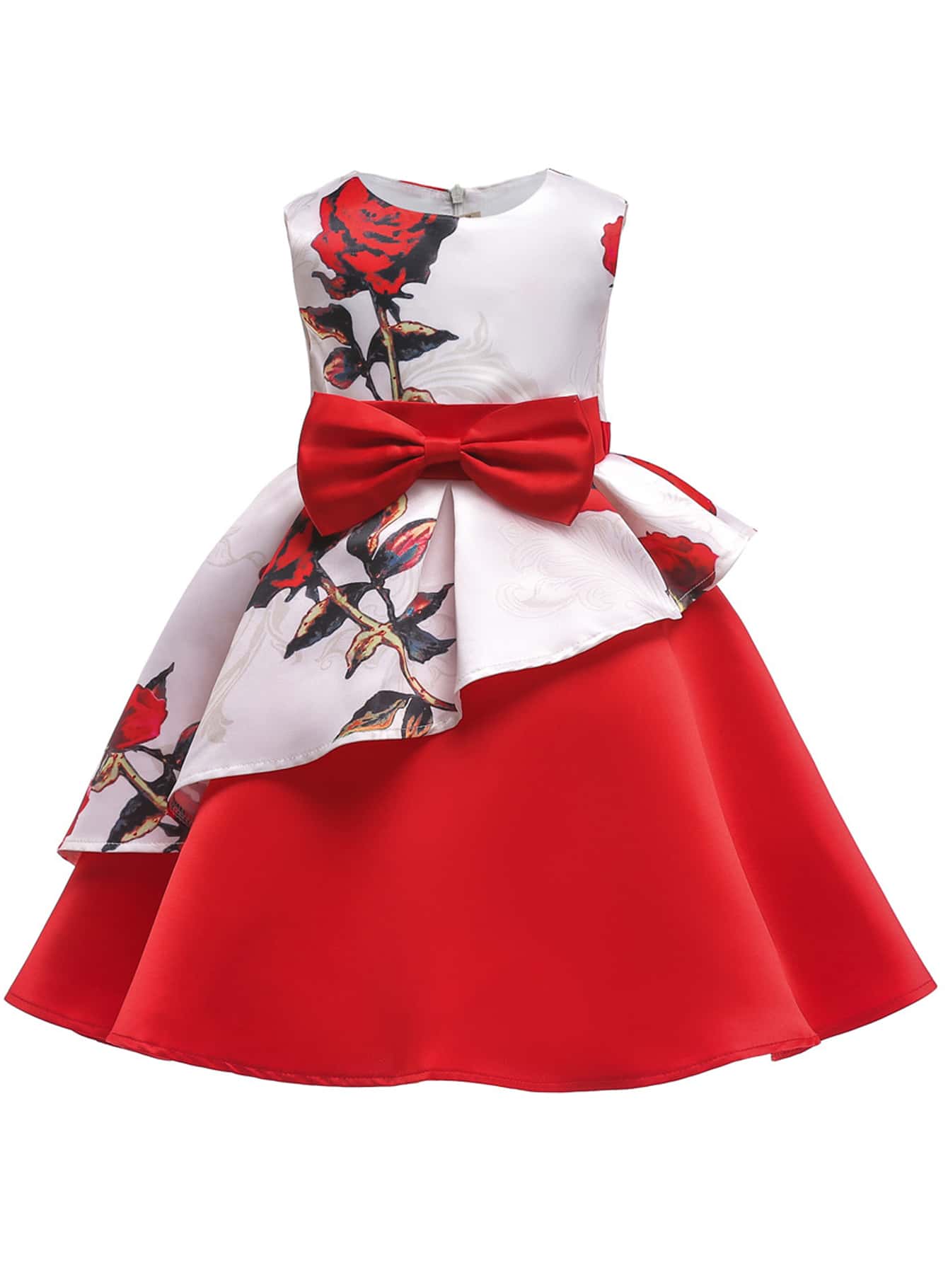Niñas Vestido de fiesta con estampado de rosa con lazo delantero