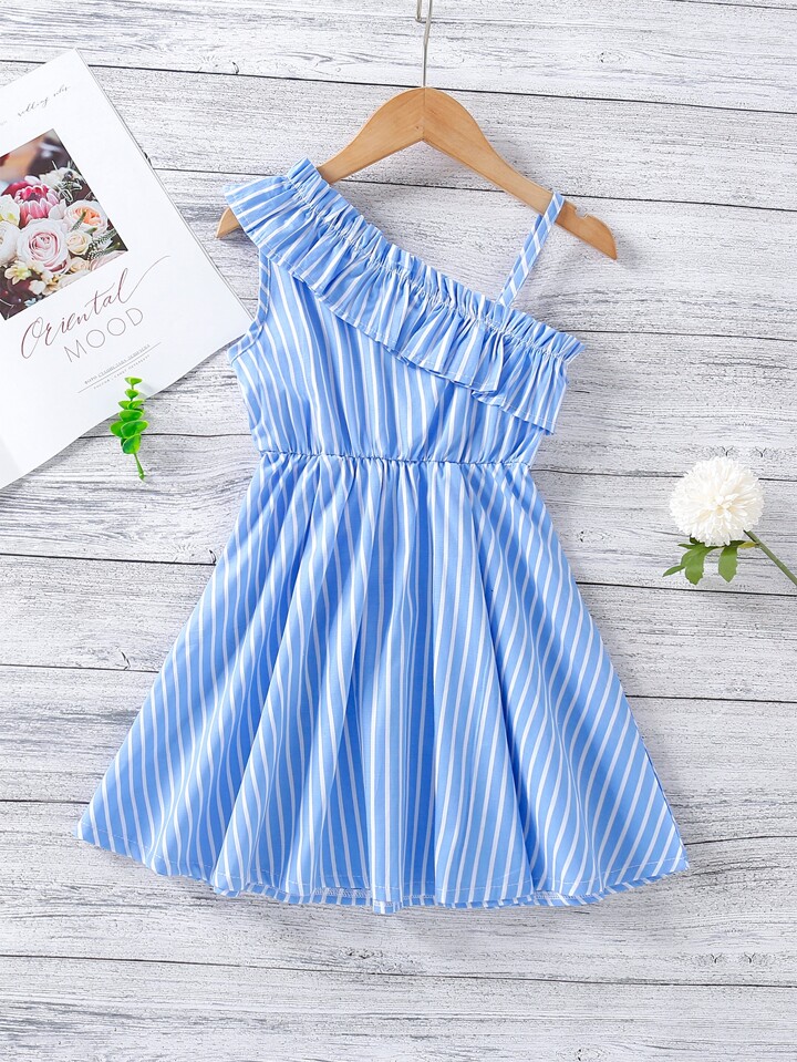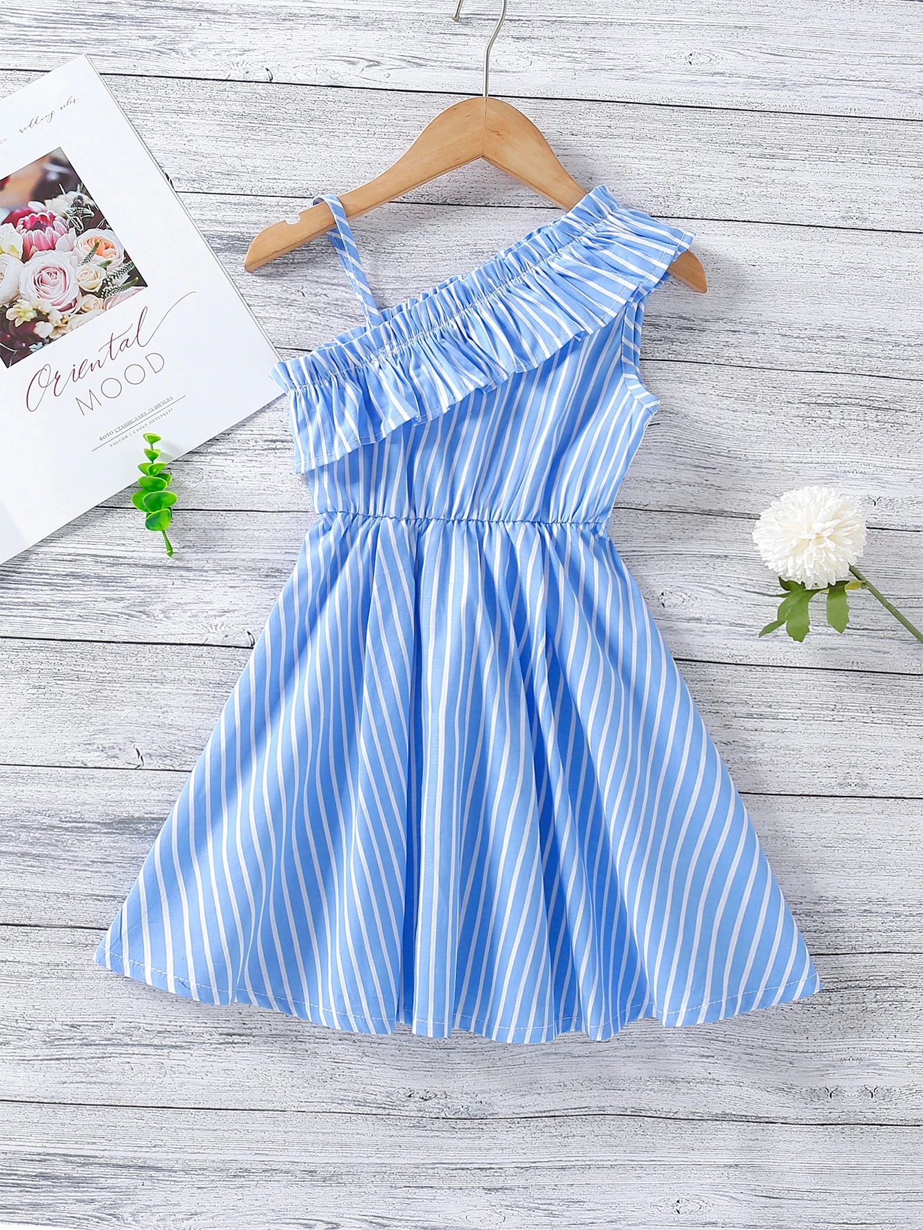 Niñitas Vestido de rayas de cuello asimétrico ribete con fruncido