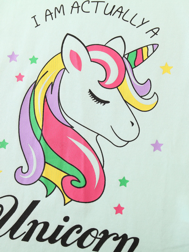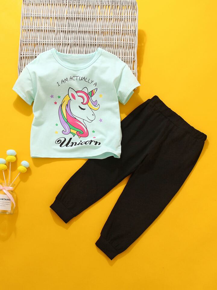 Camiseta con estampado de slogan y unicornio con pantalones