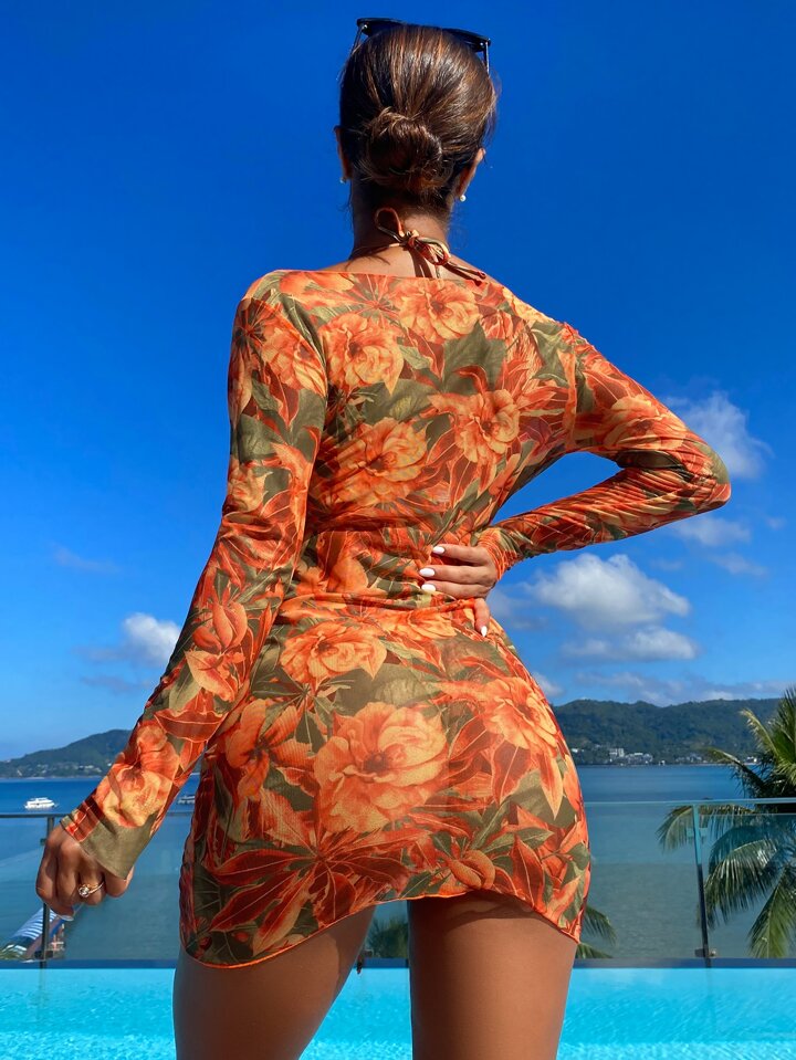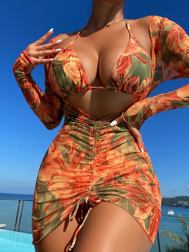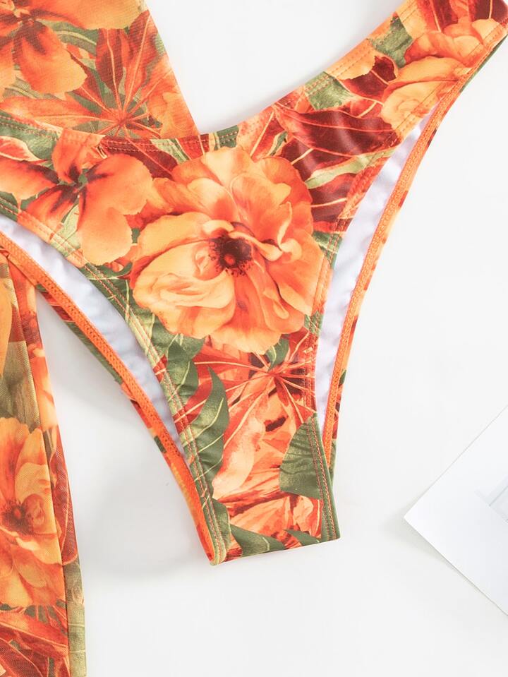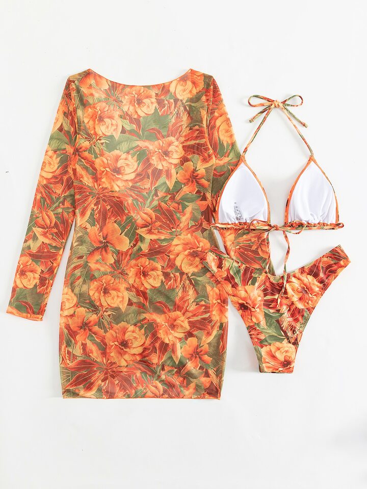 Conjunto De Bikini De Playa De Verano Con Triángulo Halter Tropical Y Cubierta Con Cordón