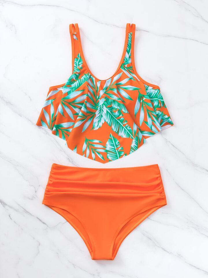 Tankini de cintura alta con estampado tropical y bajo de pañuelo para playa de verano