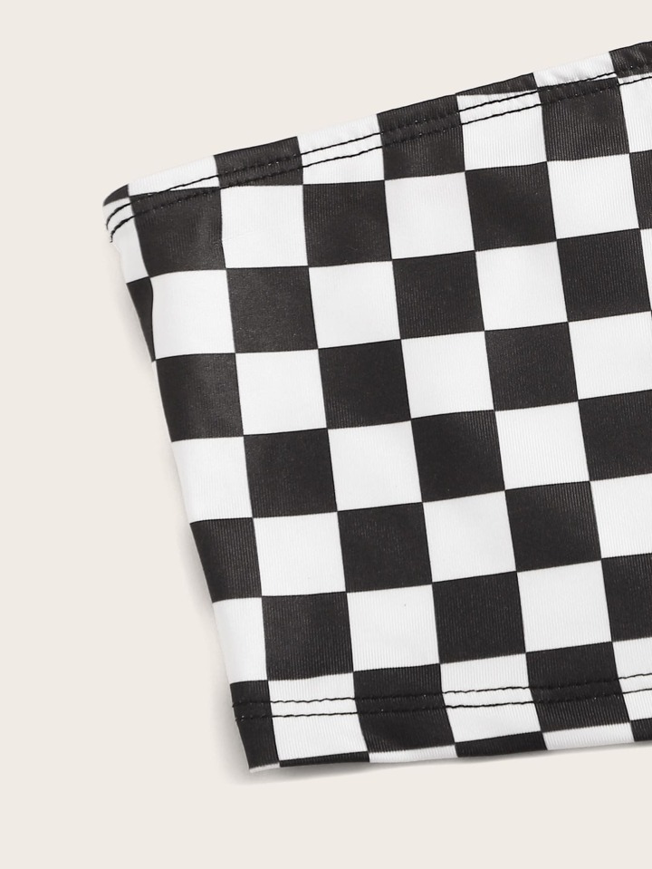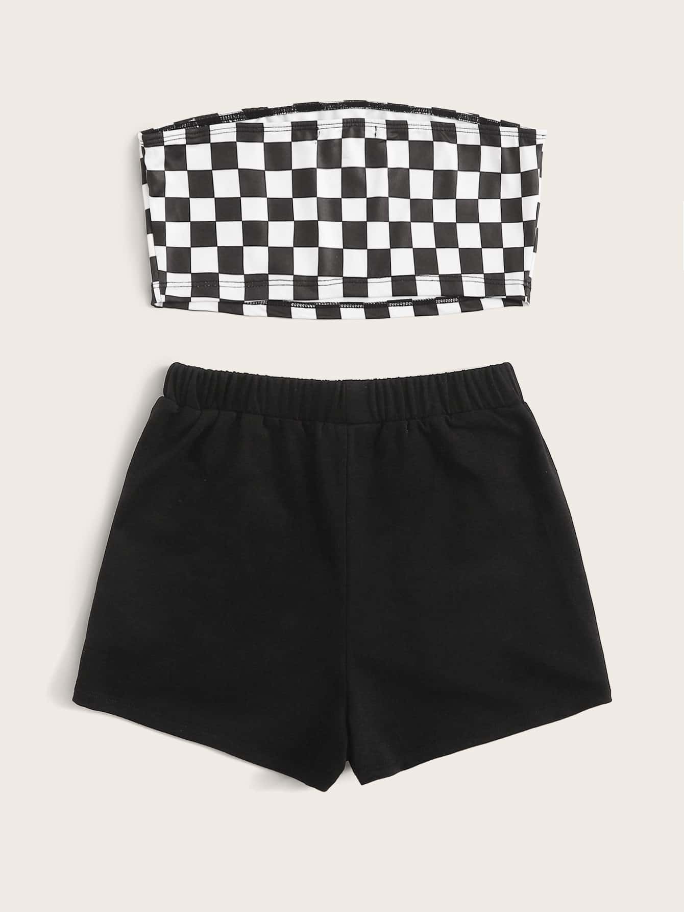 Conjunto de niñas top corto tubo de cuadros con shorts de cintura con cordón
