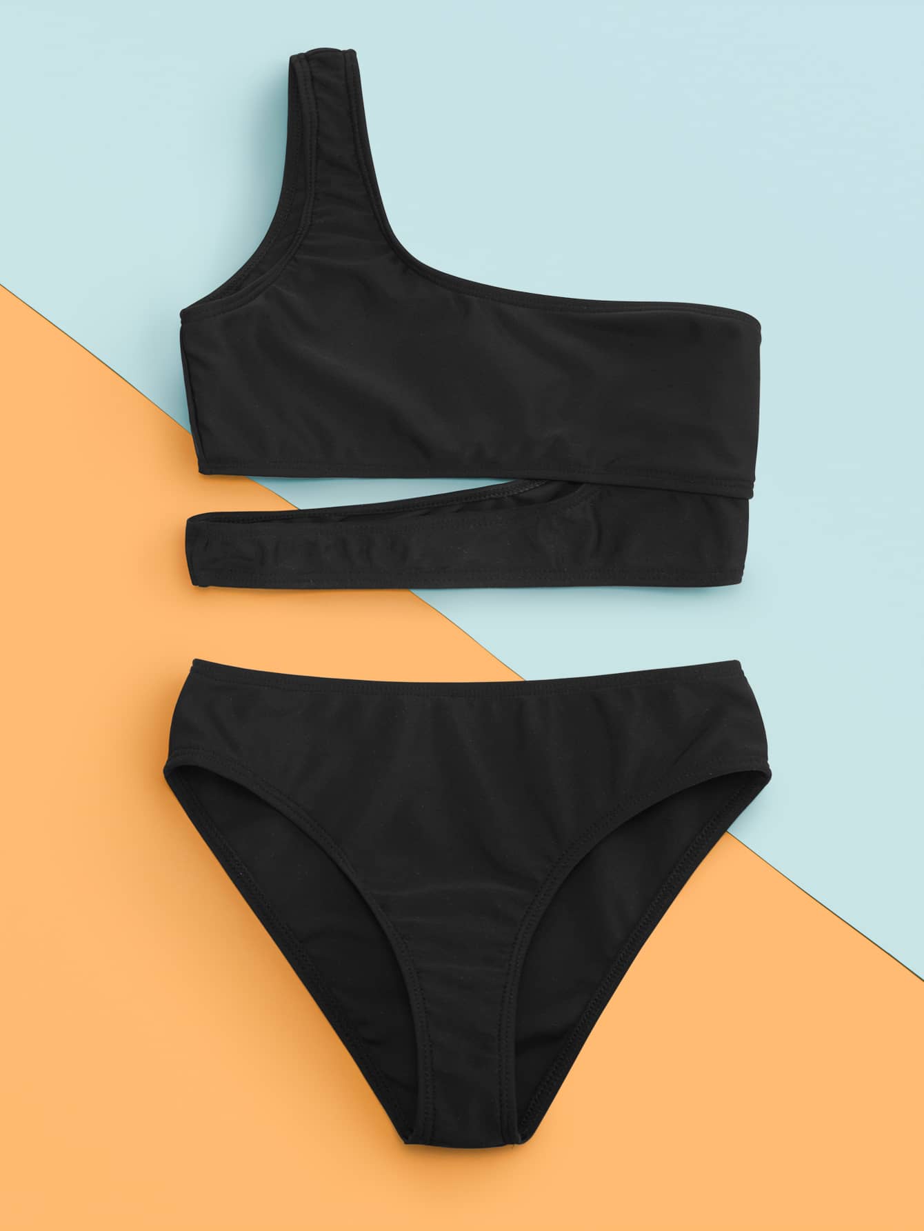 Bikini de un hombro con recortes para niña preadolescente, para el verano y la playa