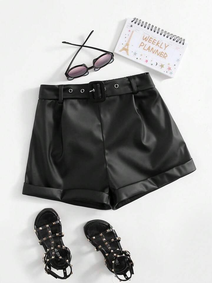 Pantalones Cortos Con Cinturón Enrollado Para Niñas Adolescentes