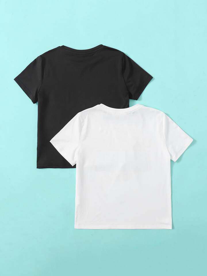 Paquete de 2 blusas con estampado de letras y gráficos para niñas preadolescentes