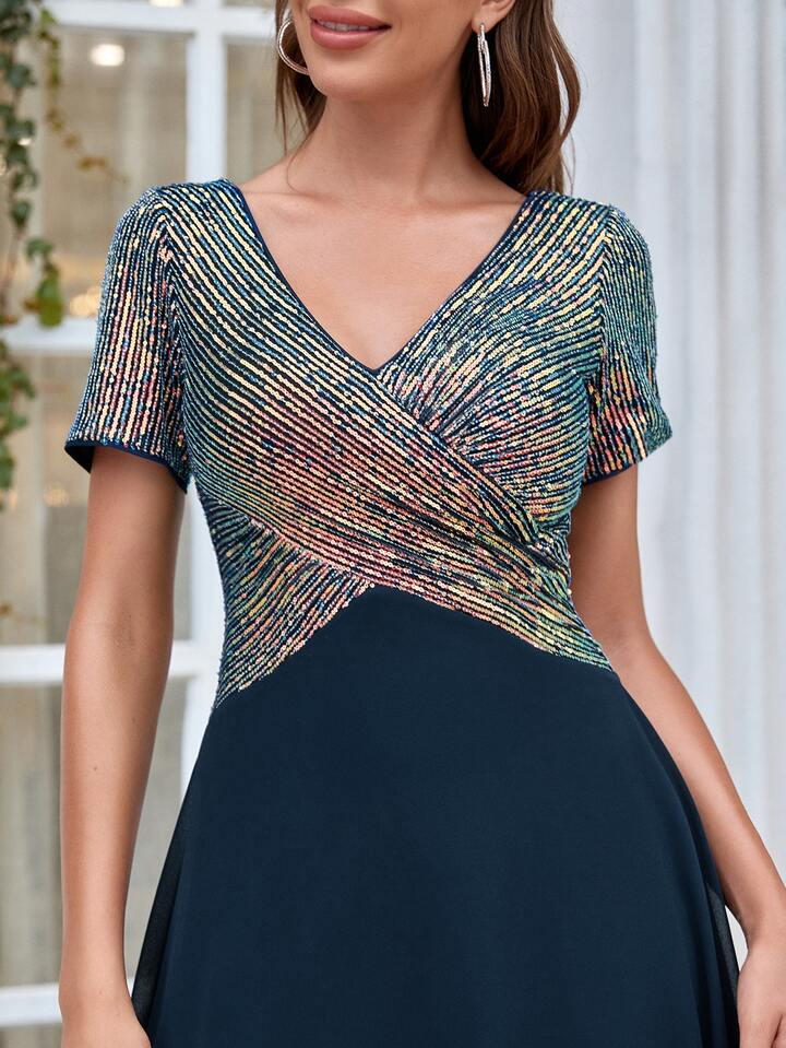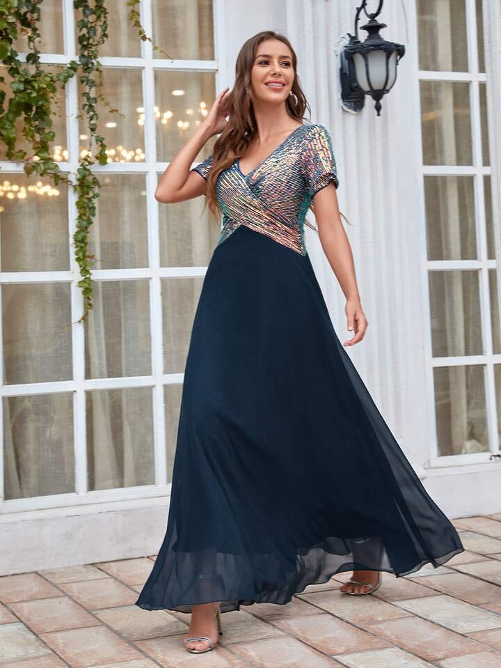 Vestido cruzado con contraste de lentejuelas UNITHORSE, vestidos formales para mujer, vestidos elegantes para madre de la novia, vestido de novia, atuendo de cumpleaños, vestido de graduación