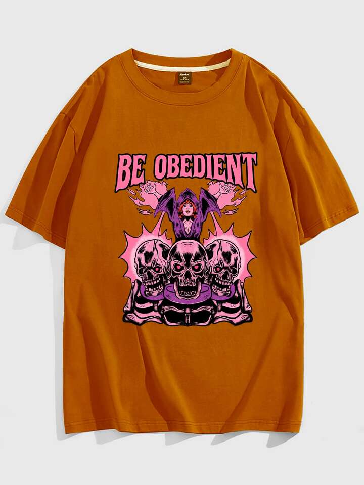 Unlogicstudio Hombres Camiseta con letra con estampado de cráneo