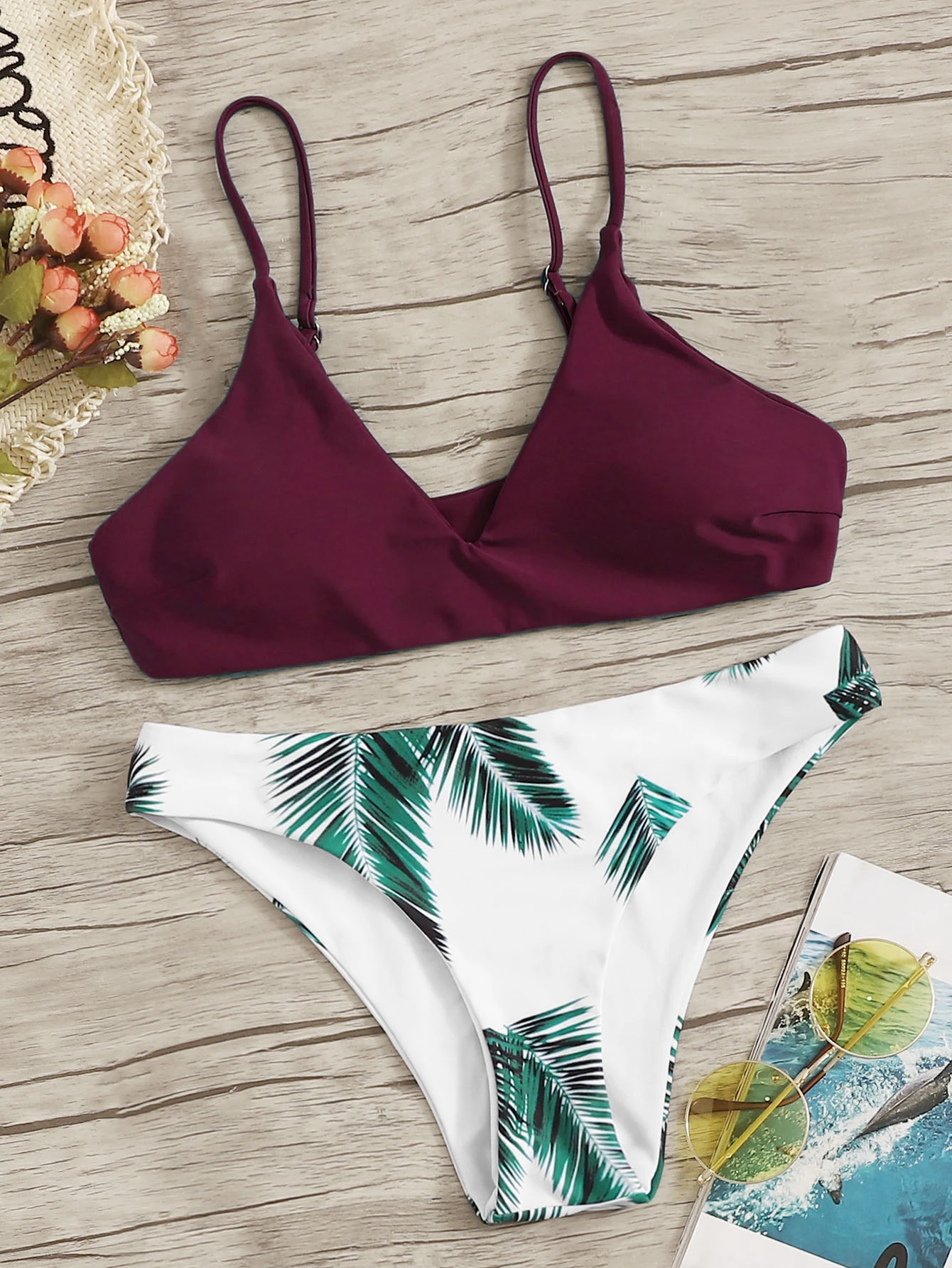 Set de bikini tropical top escote V