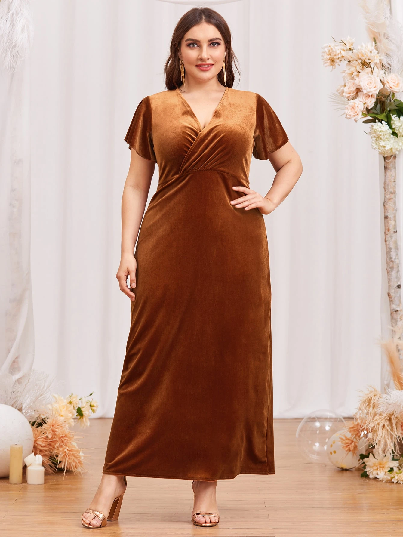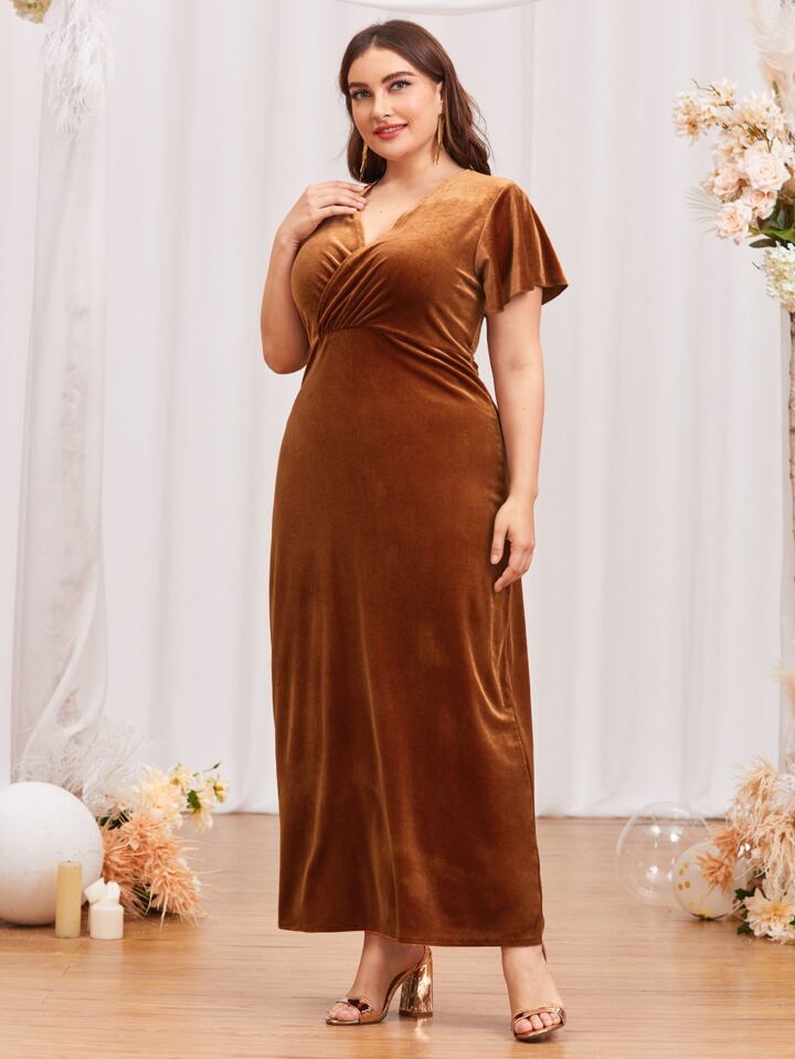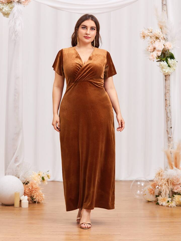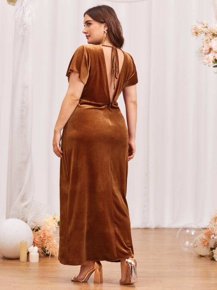 Vestido con escote envolvente y espalda con lazo en terciopelo