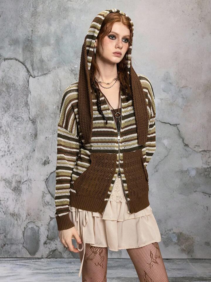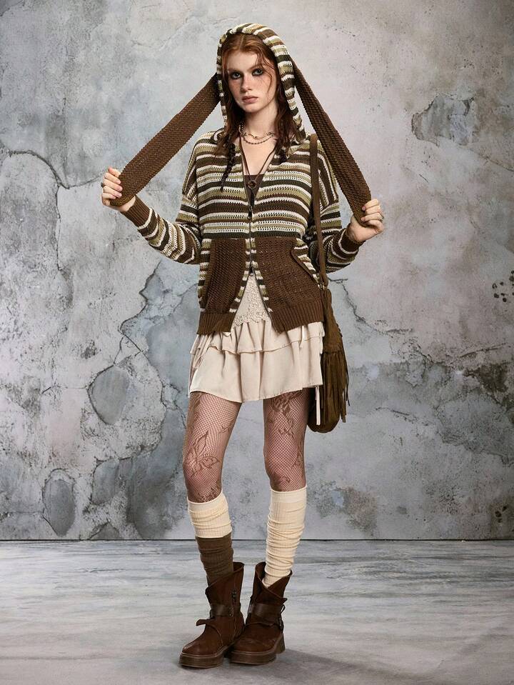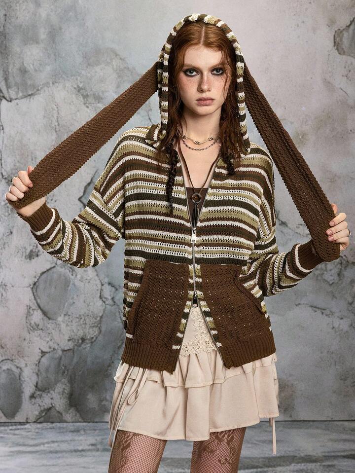 Suéter vintage de estilo fairycore con orejas de conejo, lindo y travieso para mujer
