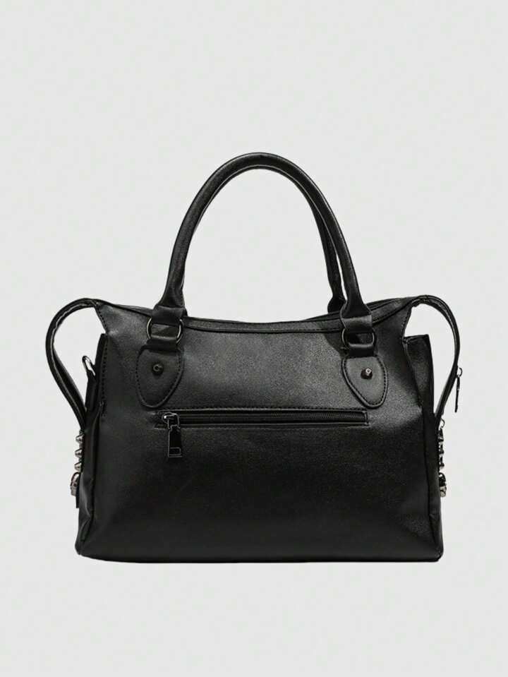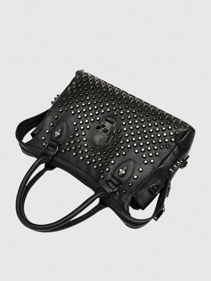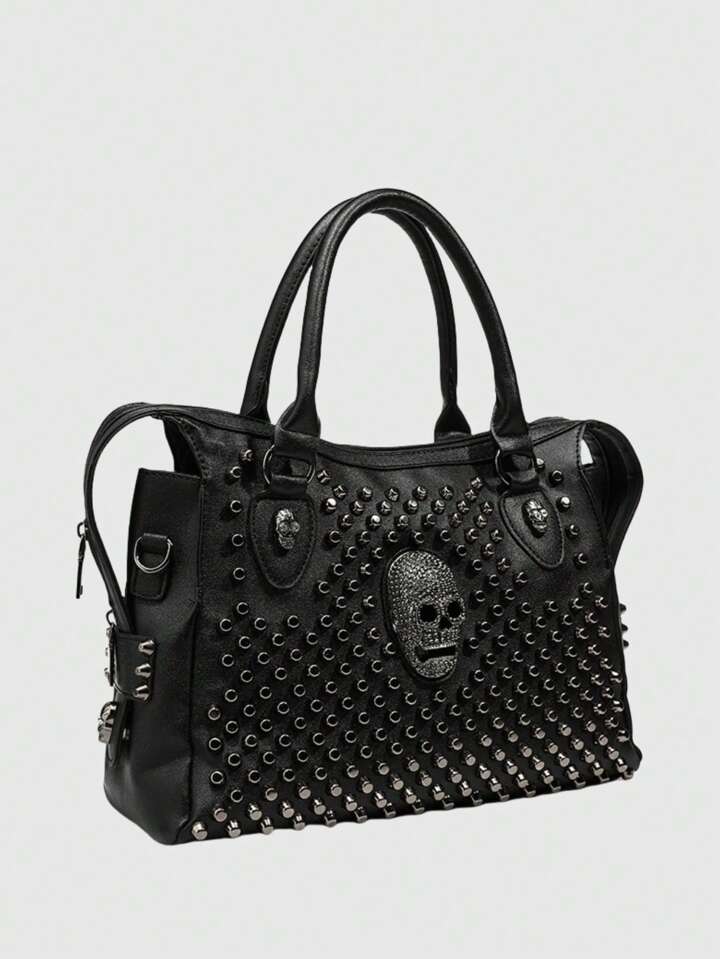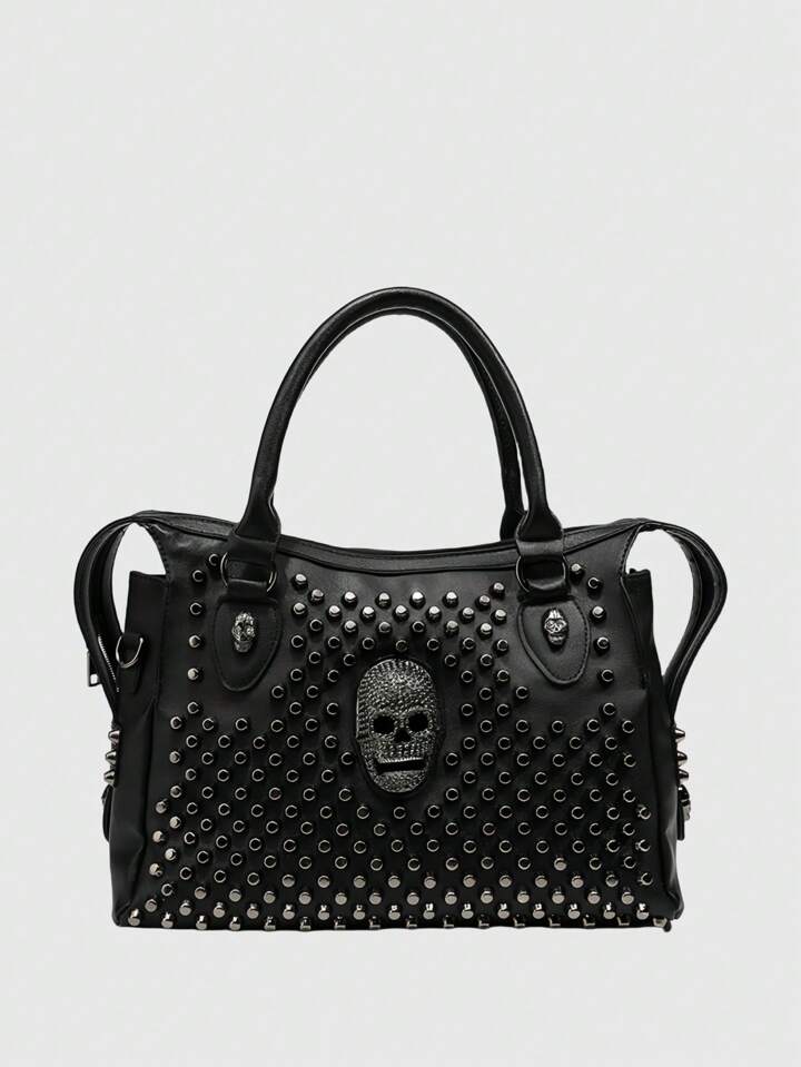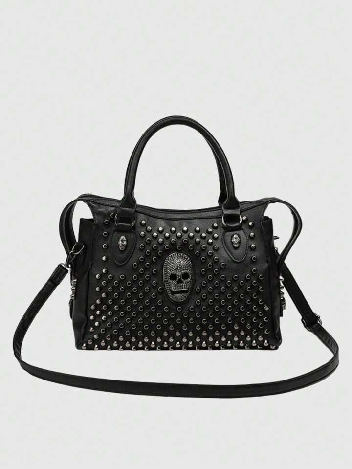 Goth Bolso de mano con diseño de calavera estilo vintage punk, bolso cruzado grande de uso casual, de calle y gótico con remaches, de gran capacidad