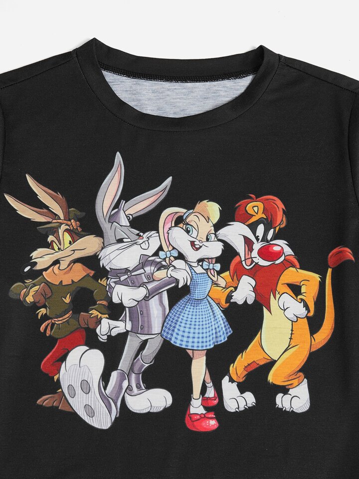 WB 100th | ROMWE Conjunto de pijama con camiseta con estampado de dibujos animados y pantalones cortos, para la escuela