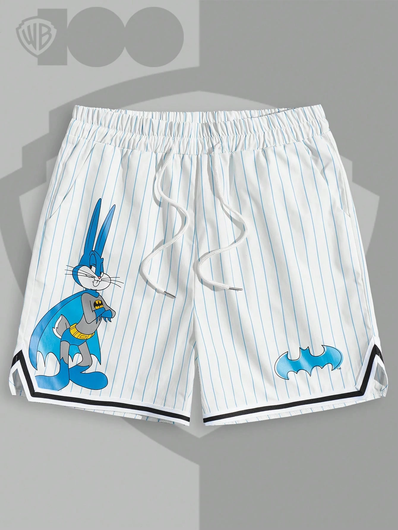 WB 100th | ROMWE Hombres Shorts con estampado de dibujos animados de rayas de cintura con cordón