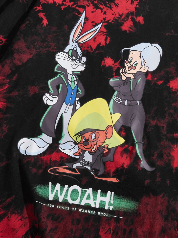WB 100th | ROMWE Hombres Camiseta de tie dye con letra con estampado de dibujos animados