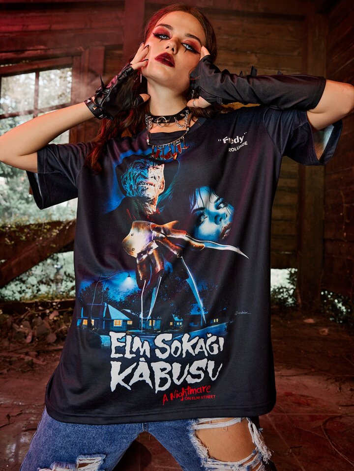 WB Horror | ROMWE Camiseta con estampado de letra