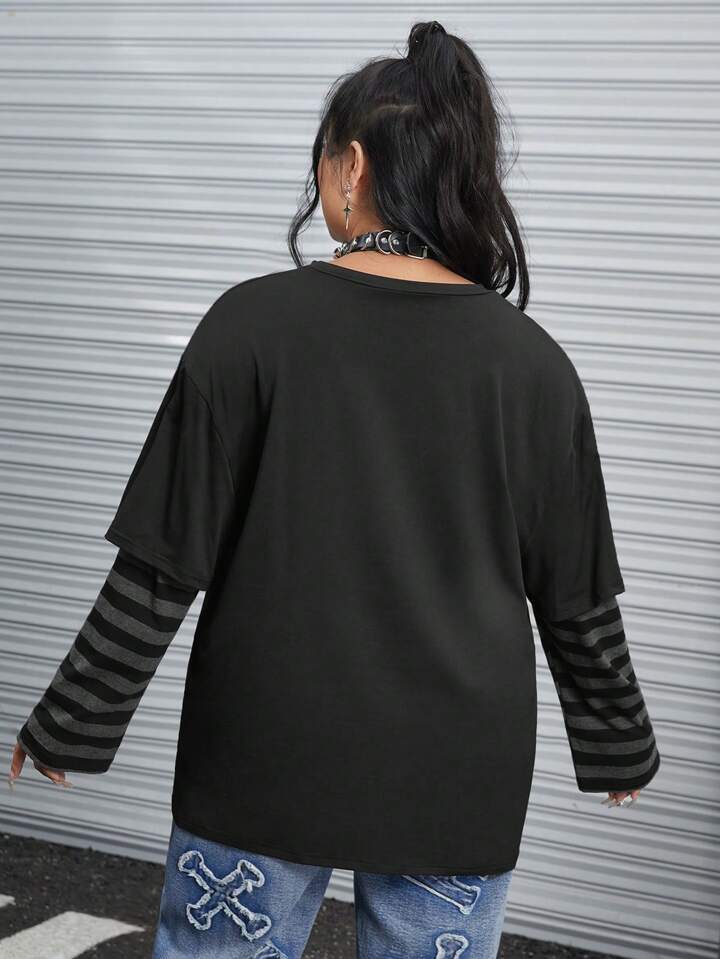 WB Horror | ROMWE Talla grande Camiseta 2 en 1 con estampado de rayas y slogan