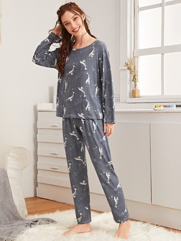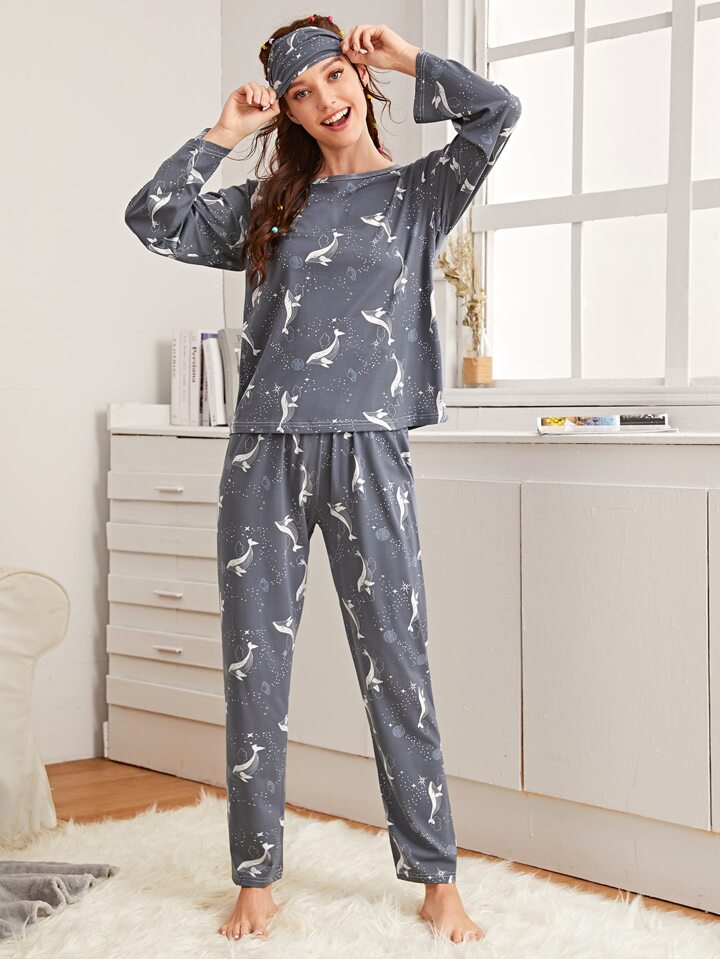 Conjunto de pijama con estampado de ballena con máscara de ojo