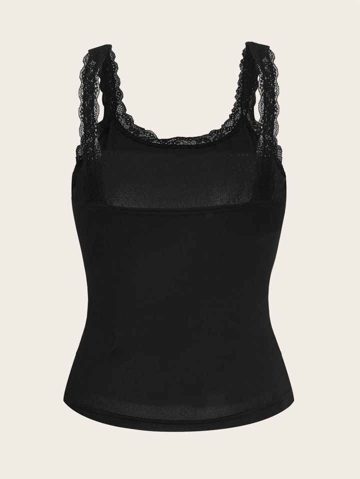 Top ala con diamante de imitación con encaje en contraste ancho con tira