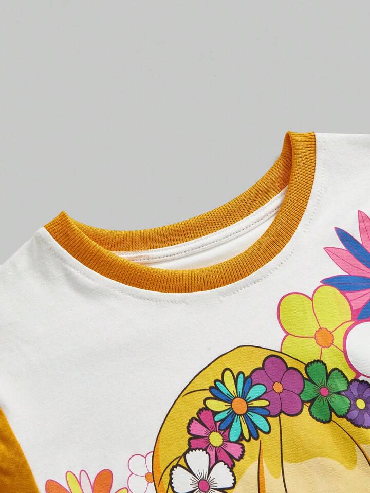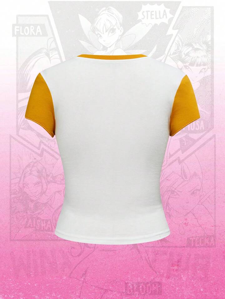 Winx Club X ROMWE Camiseta de manga corta con cuello redondo y estampado gráfico de figura de color block para mujer, primavera/verano