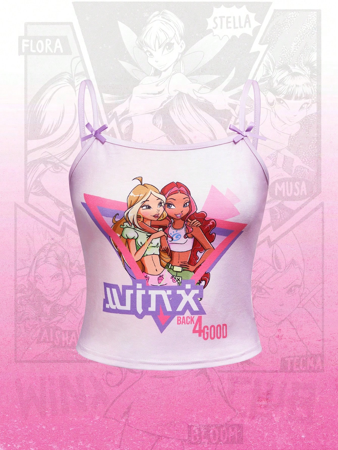 Winx Club X ROMWE Top ajustado de verano con patrón de retrato de dibujos animados retro para mujeres