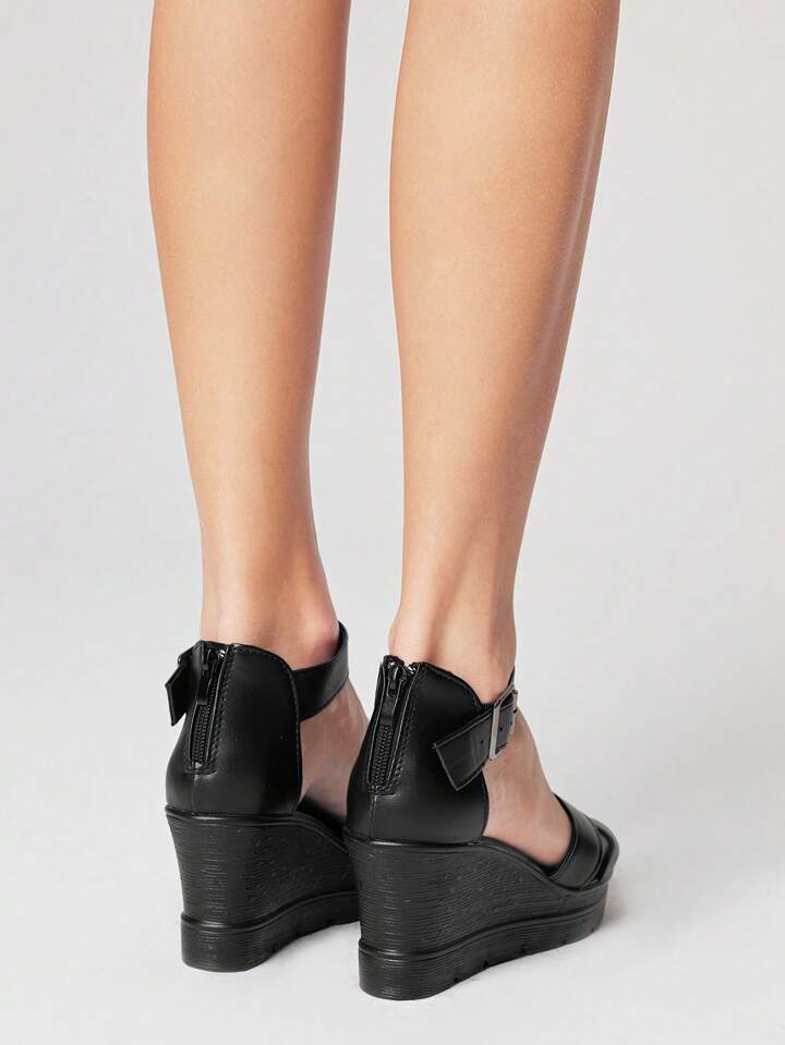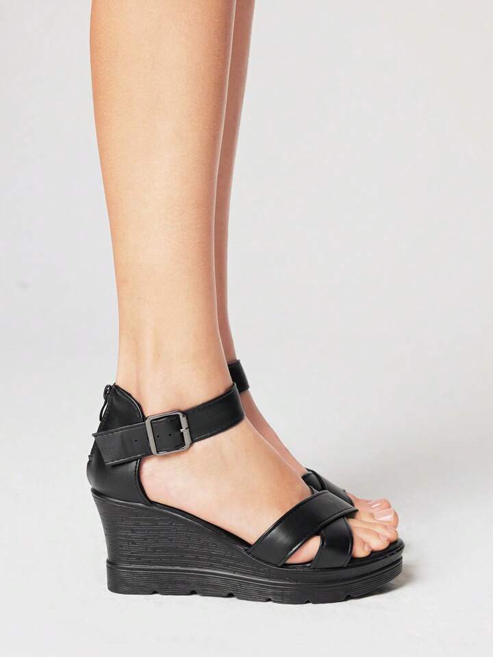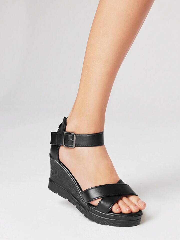 Sandalias romanas casuales de moda diaria para mujer con plataforma, tira cruzada y hebilla, con tacón de bloque de 8 cm