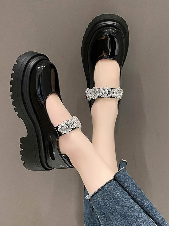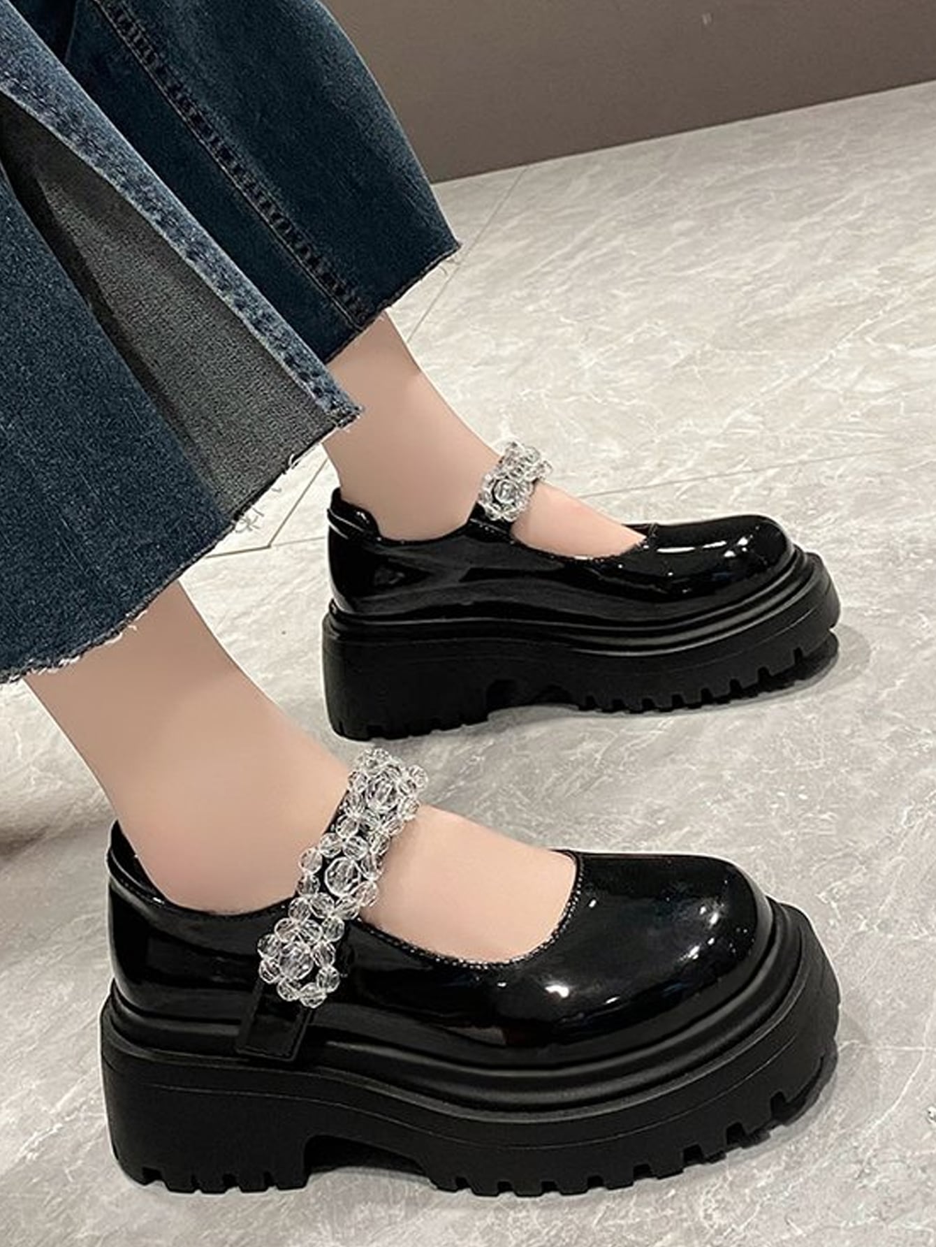 Mujer Zapatos mary jane con diseño de cuenta plataforma preppy negro