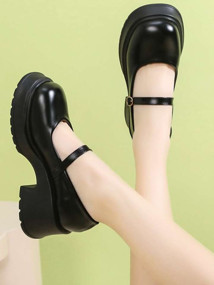Mujer Zapatos mary jane con diseño de hebilla punta redonda plataforma preppy negro