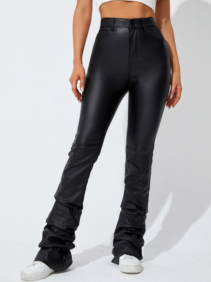 Pantalones acampanados de ajuste ceñido de unicolor casual para mujer
