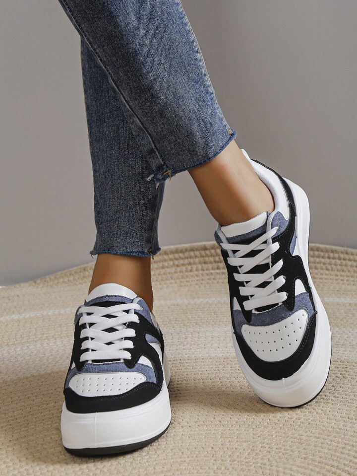 Zapatos de skate con cordones en la parte delantera para mujer de color combinado, zapatillas deportivas para exteriores