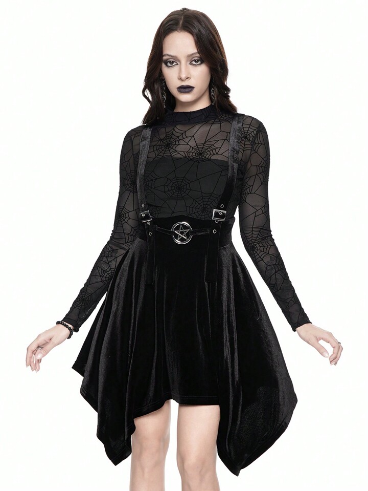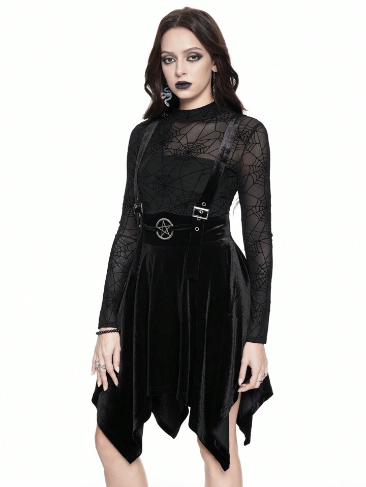 Goth Falda mini asimétrica con hebilla de estilo gótico pentagonal para mujeres