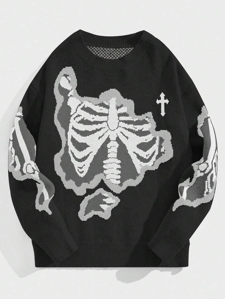 Goth Suéter de mujer con estampado de calavera en jacquard de estilo gótico
