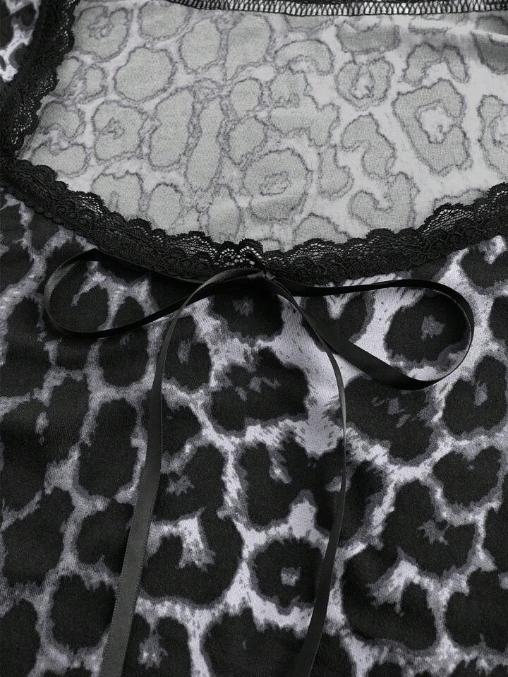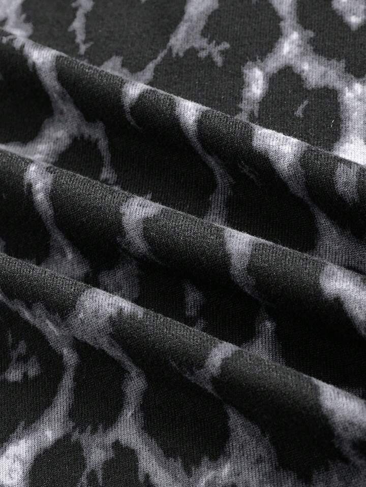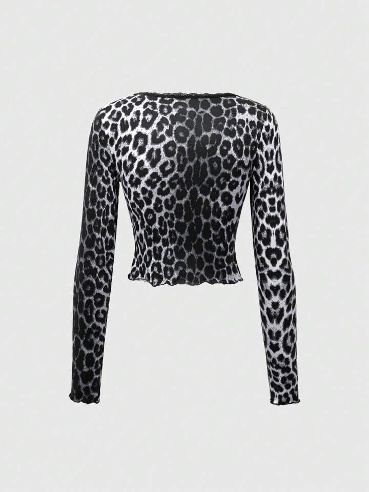 Camiseta básica de manga larga con cuello de cinta con estampado de leopardo, para otoño