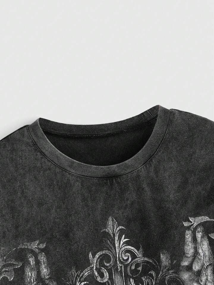 Camiseta holgada estampada con gráficos vintage de cruz y calavera, estilo punk, para mujer
