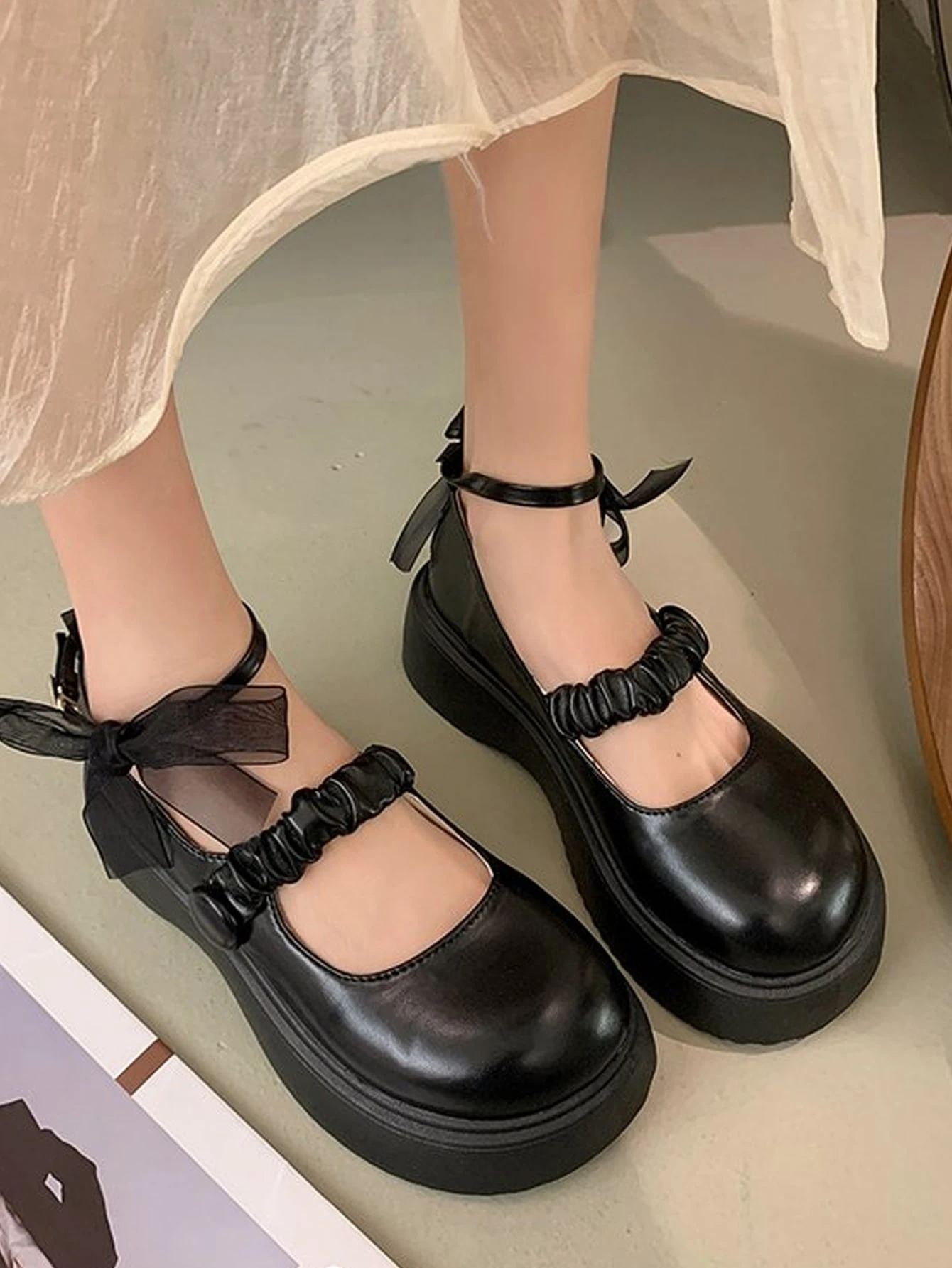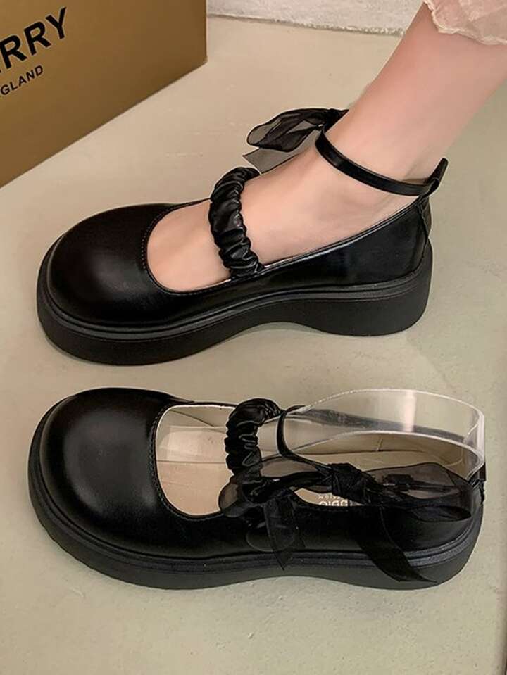 Mujer Cuñas de corte con diseño fruncido tira tobillera plataforma preppy negro