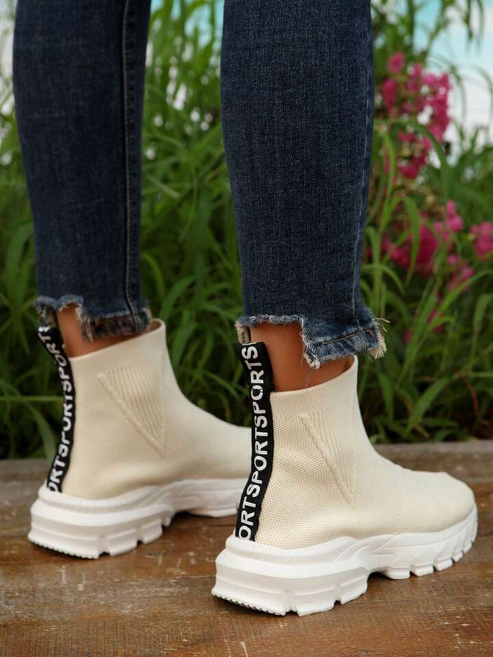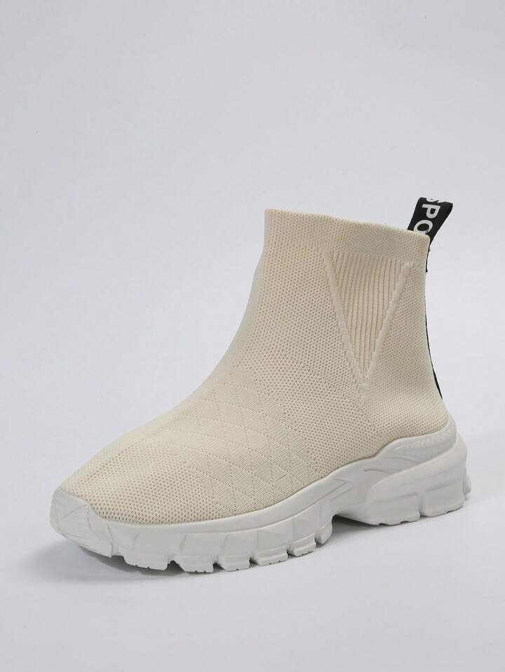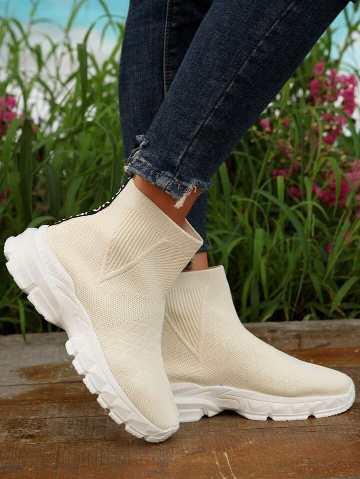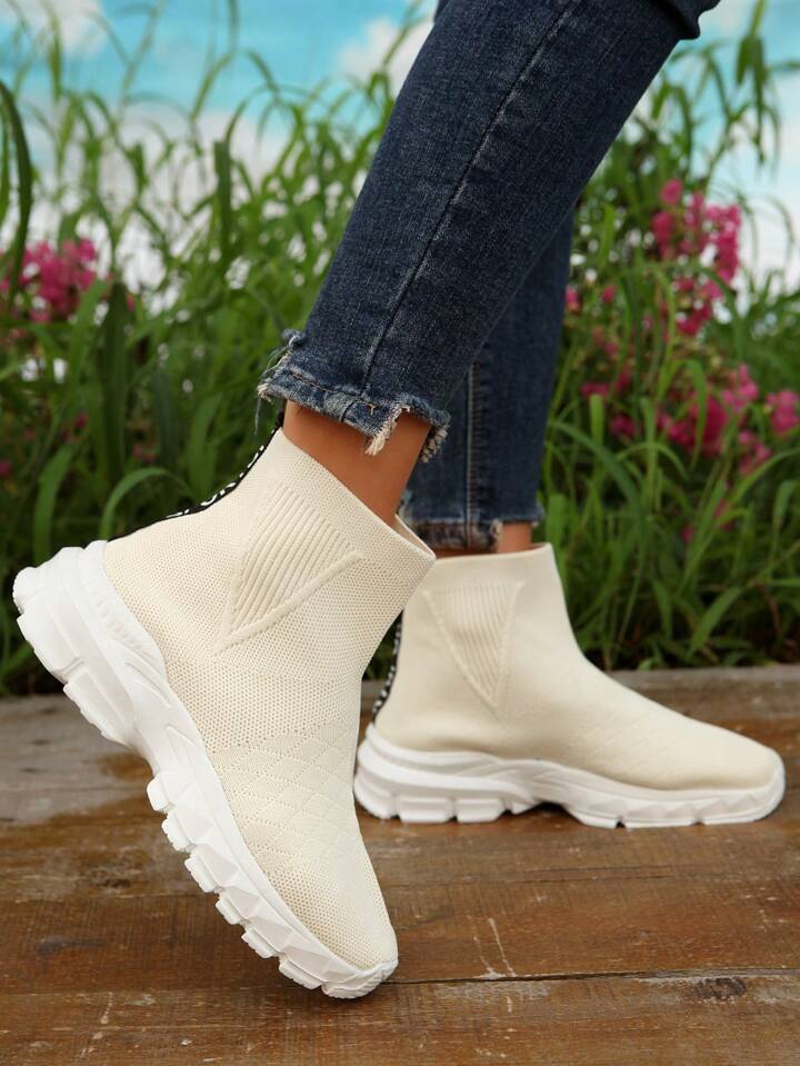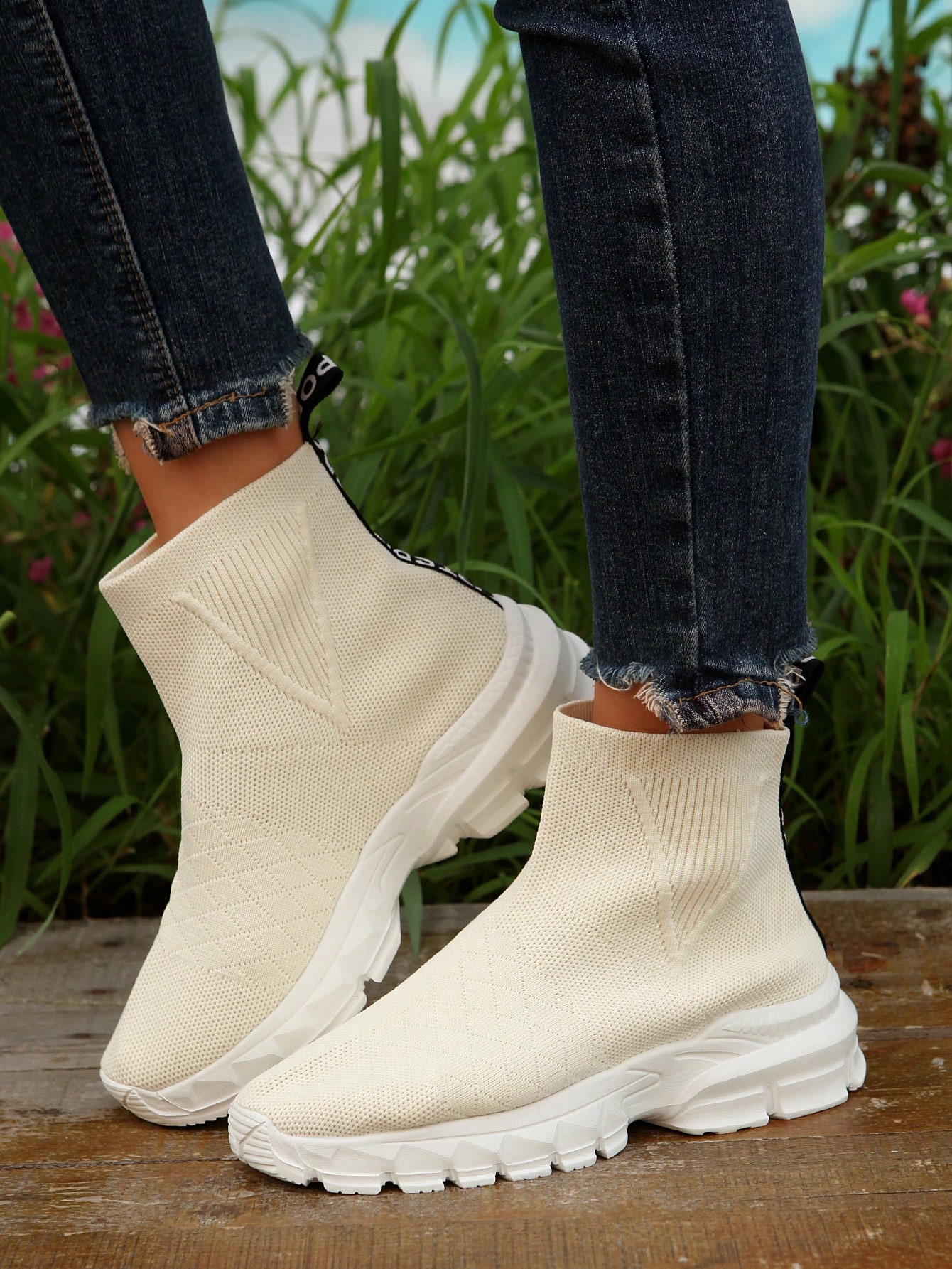 Zapatos Casuales Cómodos De Corte Alto En Beige Para Mujer, Zapatos De Correr Ligeros Y Absorbentes De Choque Con Malla Transpirable