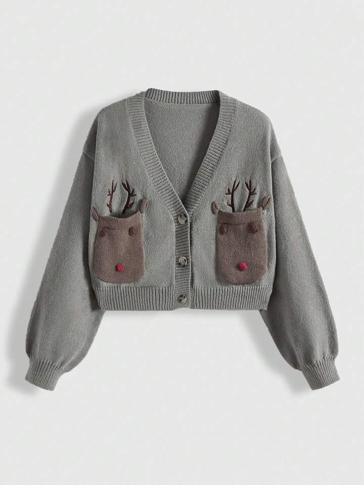 Cárdigan De Navidad Con Patrón De Reno Para Mujeres