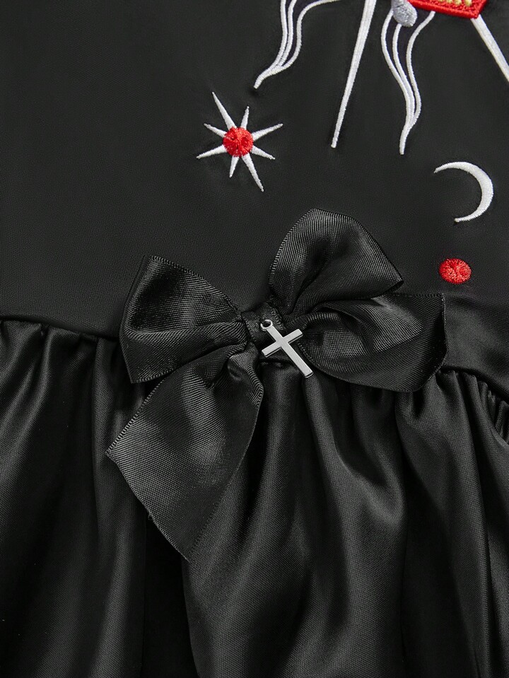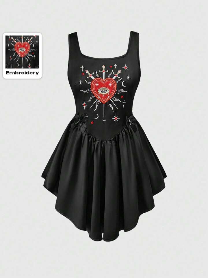 Goth Vestido mini con borde asimétrico, bordado gótico con corazón de cristal y gota, estilo gótico hada para mujer, primavera