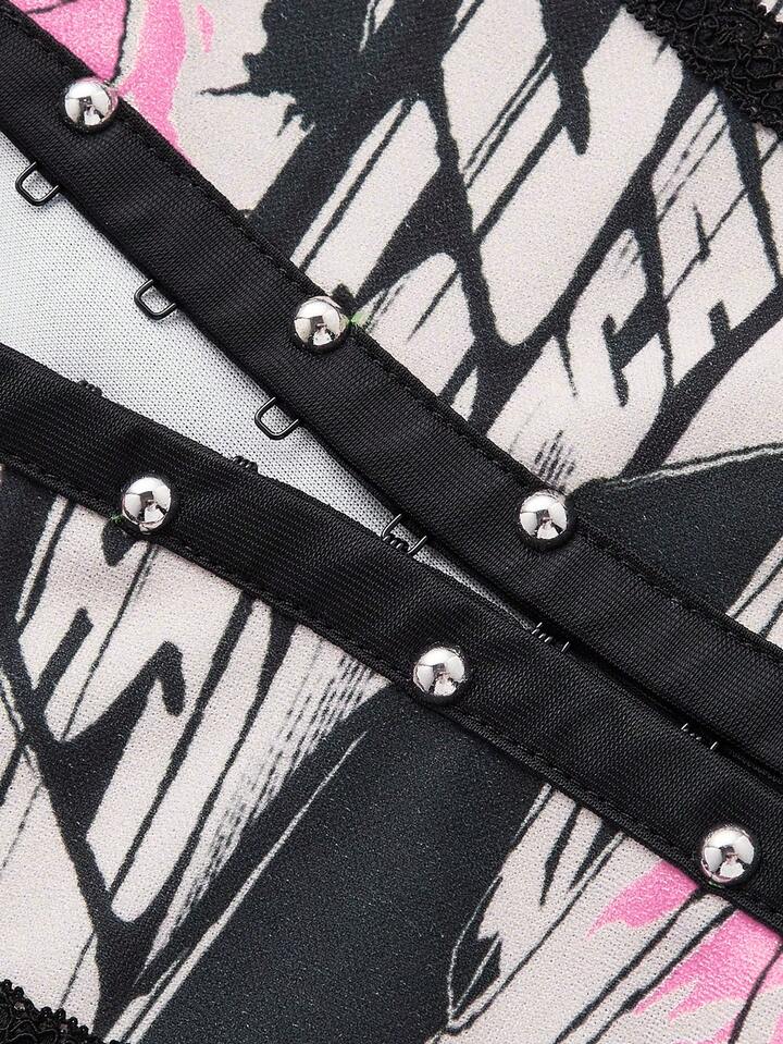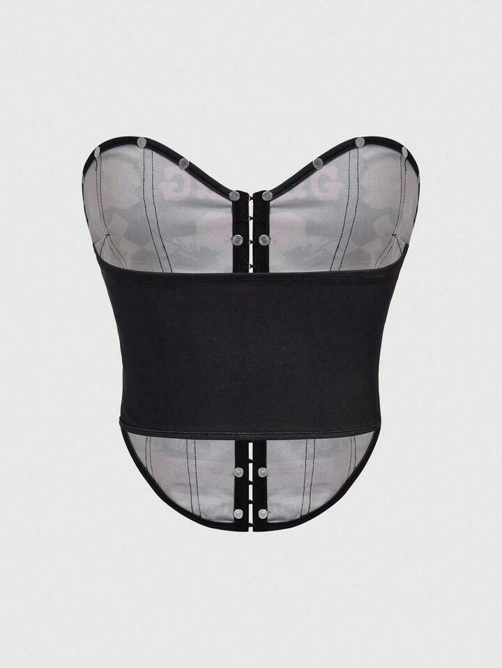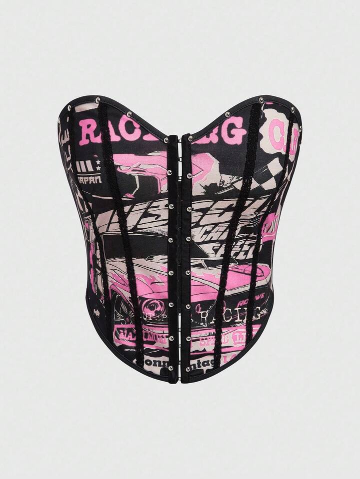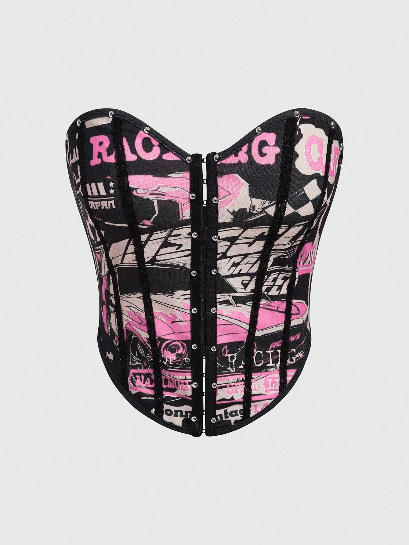 Top corto ajustado con estampado total y costuras en espina de pescado