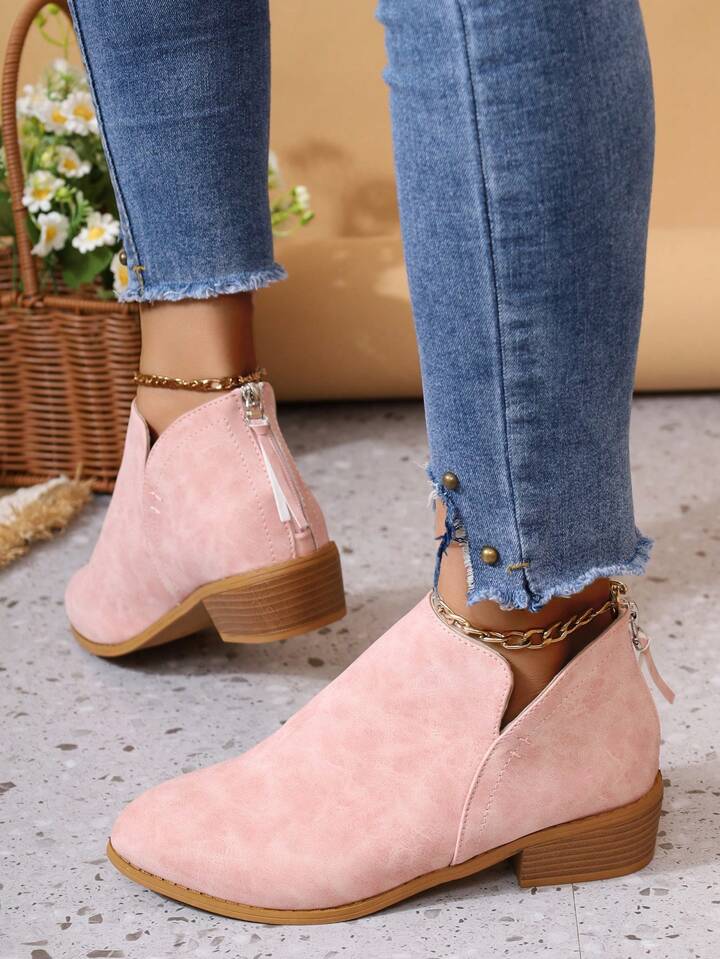 Botines Chelsea Cortos Para Mujer, Tacón Grueso Botines De Tobillo Para El Otoño E Invierno