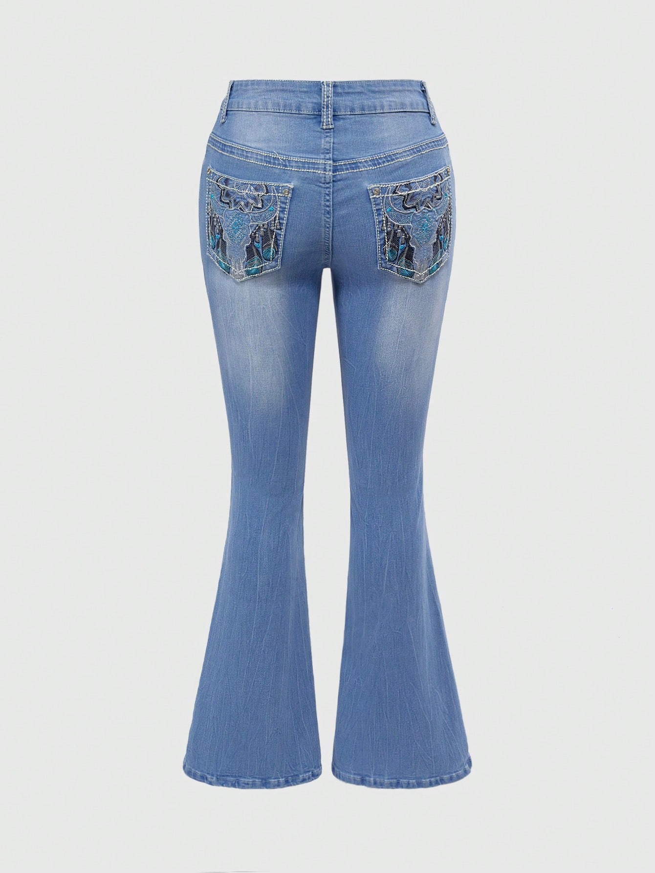 Jeans de mezclilla con bordados estilo cowgirl y hippie para mujeres